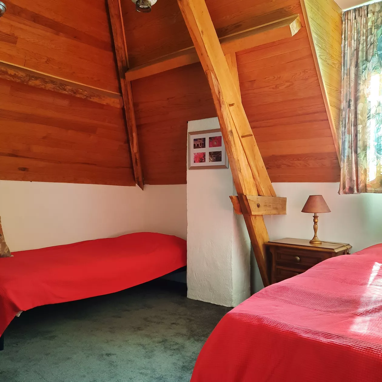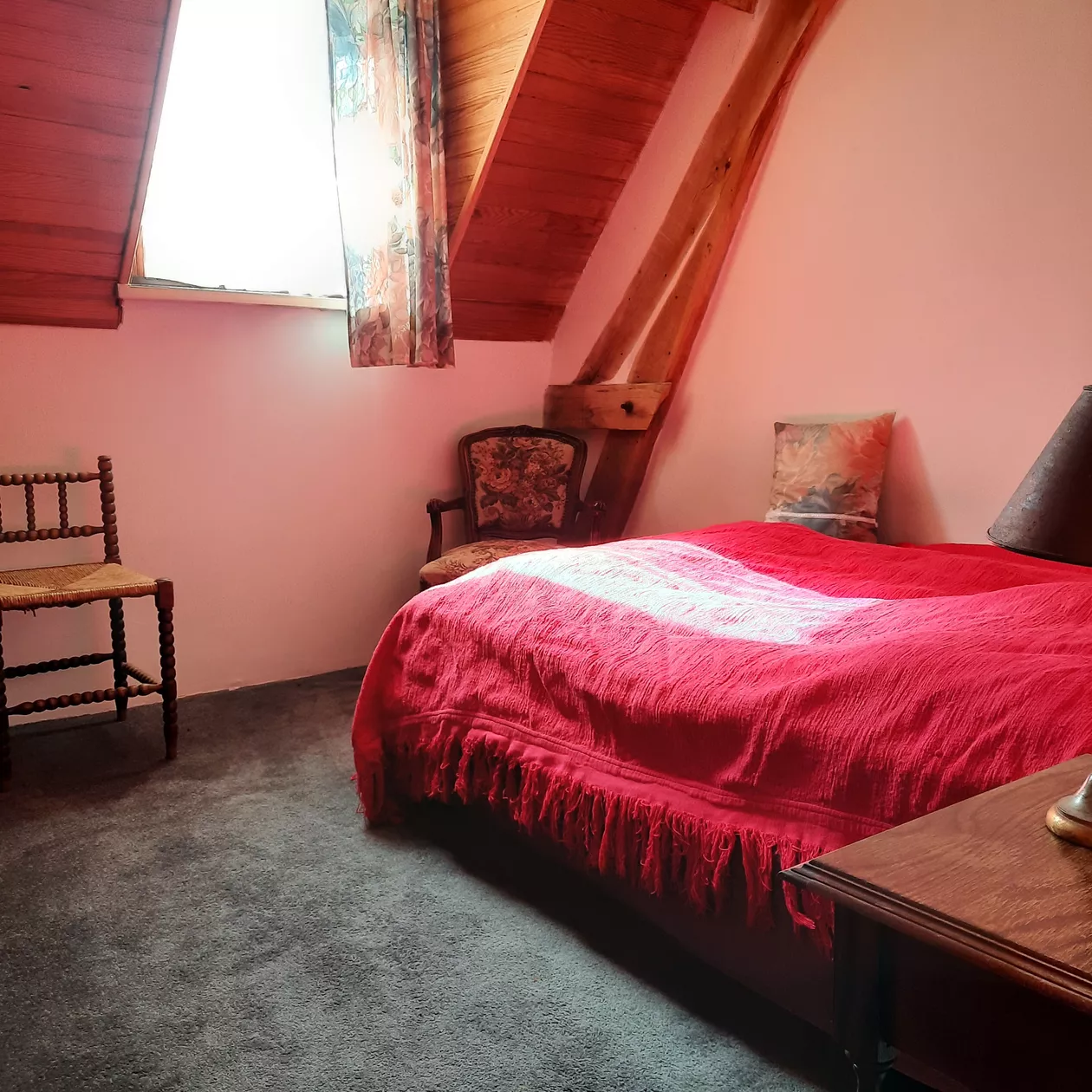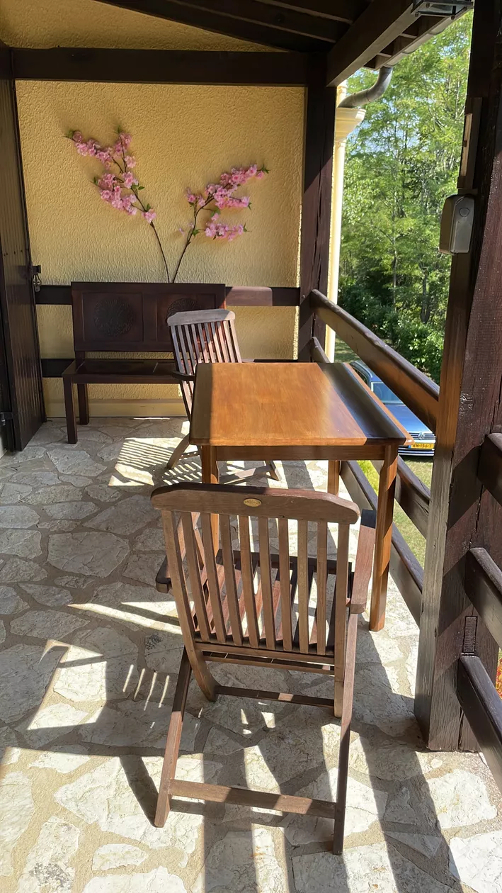 Voor de verhuur is de gîte beschikbaar voor zes personen en voorzien van alle benodigdheden om uw verblijf aangenaam te maken. Op de eerste etage, boven de garage vindt u de grote woonkamer met een open haard, een flinke eetkeuken, een tweepersoons slaapkamer, een grote badkamer en een toilet.