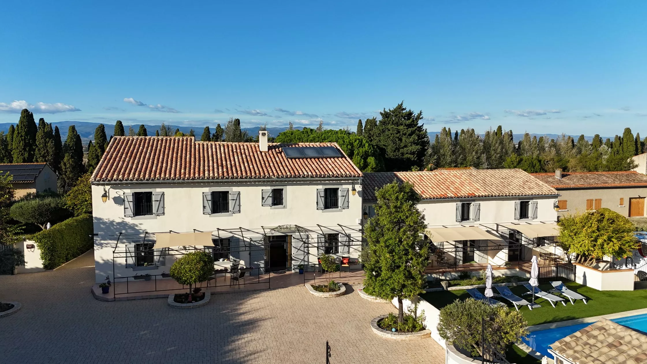 Het Ponpon vakantiehuis is een gezellige maisonnette met twee badkamers, een terras met uitzicht op de tuin en een zithoek bij het zwembad.