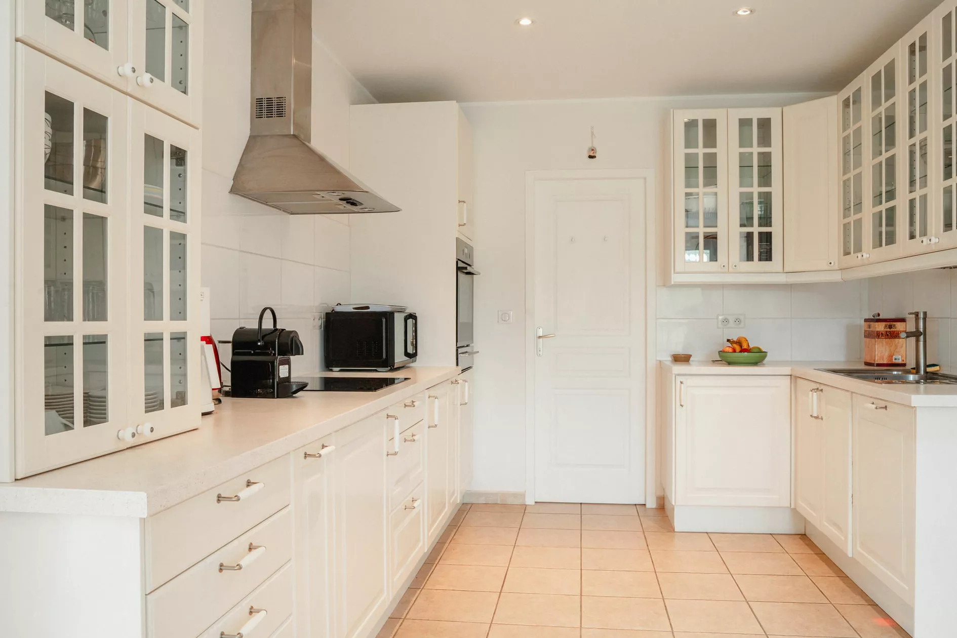 Volledig uitgeruste open keuken: kookplaat, afzuigkap, koffiezetapparaat, broodrooster, waterkoker, oven, magnetron, vaatwasser, vriezer, blender, keukenrobot