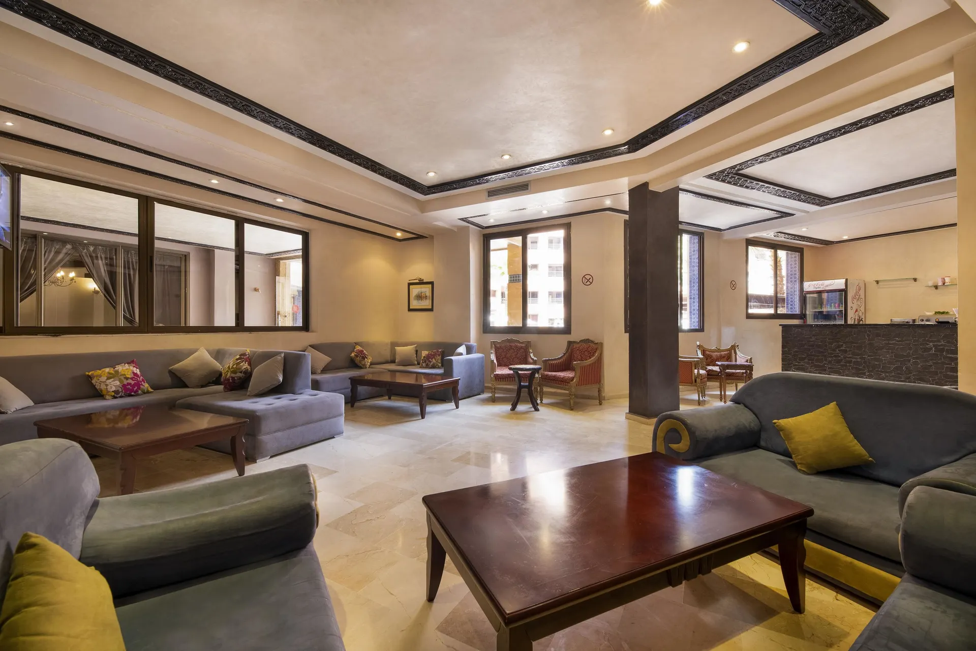 Het hotel is rustig gelegen, slechts 200 meter van de luxueuze wijk Gueliz en ongeveer 2 km van de oude medina met toeristische attracties als het Palais Badii, Palais Bahia of La Koutoubia.