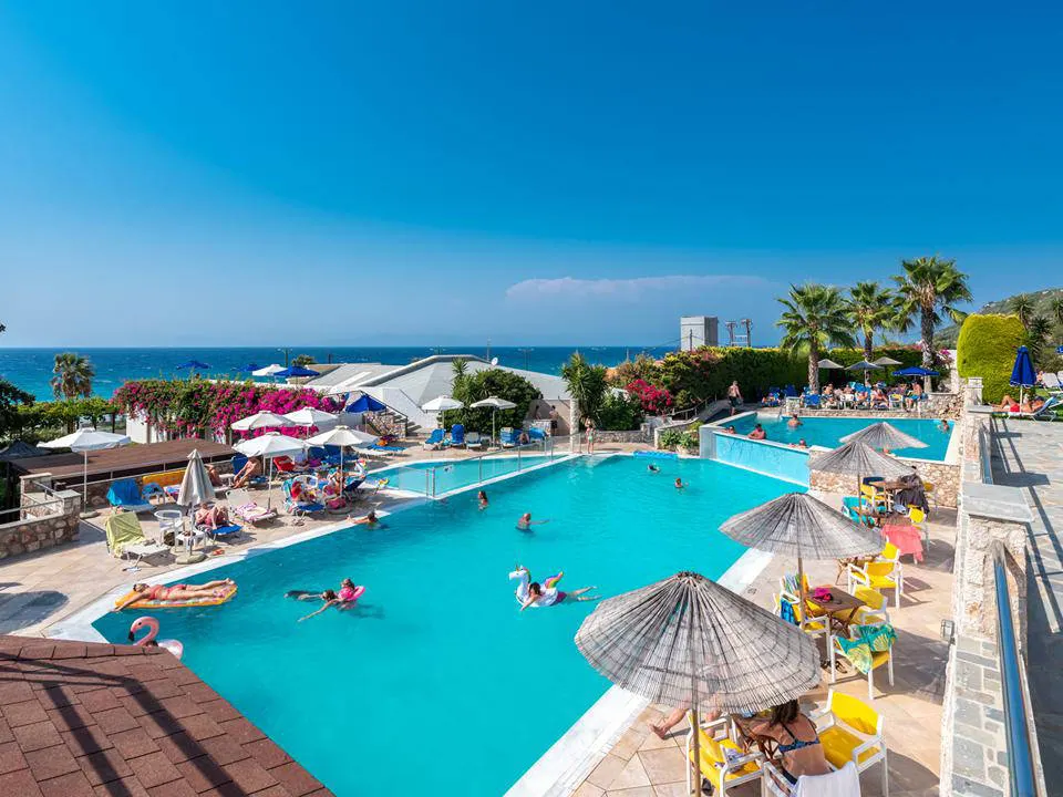 Je kunt hier in alle rust van de zon genieten op de zonneweide bij het zwembad. Vanuit het buffetrestaurant heb je een prachtig uitzicht op zee.