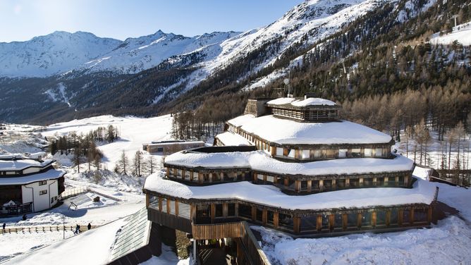 Het 4-sterren Blu Hotel Senales Zirm - Cristal ligt op 2100 m hoogte in Kurzras, op ongeveer 200 m van de skiliften/gondel en het dorpscentrum.