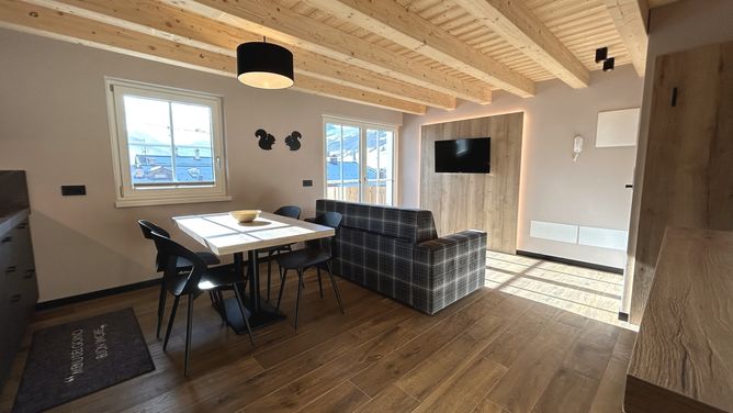 Het onlangs gerenoveerde Chalet Domin ligt op ongeveer 800 m van de Cassana lift, tegenover de pistes van het Carosello skigebied.