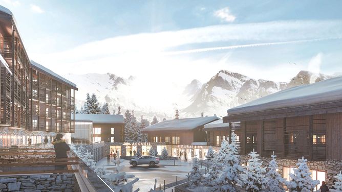 1,1 km van het centrum van La Rosière op een hoogte van ca. 1.850 m. De toegang tot het skigebied is via de op ongeveer 800 m verder gelegen lift "Les Eucherts" mogelijk. De dichtstbijzijnde afdaling voor alpine skiërs en snowboarders ligt direct voor de huisdeur.