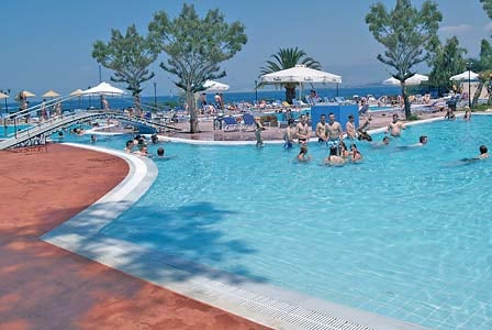 Ruime camping aan zee met een waterparadijs voor jongeren, met gedateerd, maar schoon sanitair..