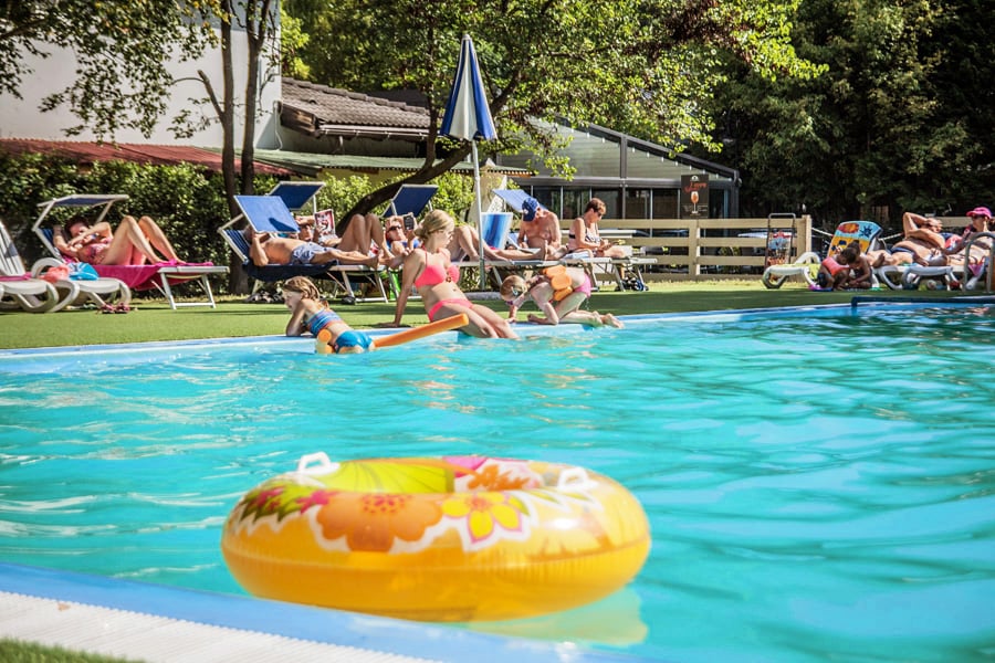 De camping heeft een zwembad, restaurant en tennisbanen in de buurt..