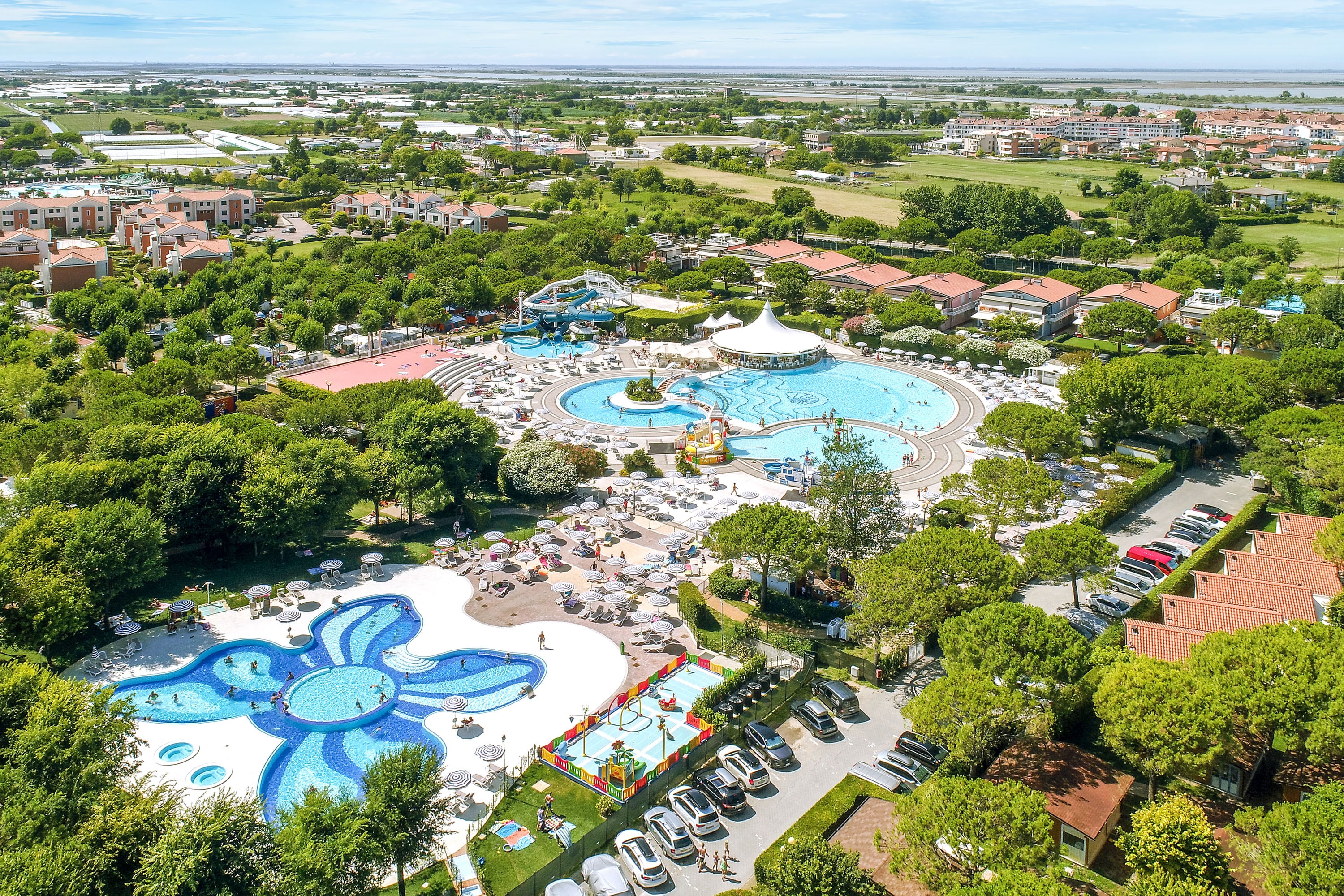 Gezellig vakantiedorp met veel bloemen, vlak aan zee, in het pijnbomenbos.