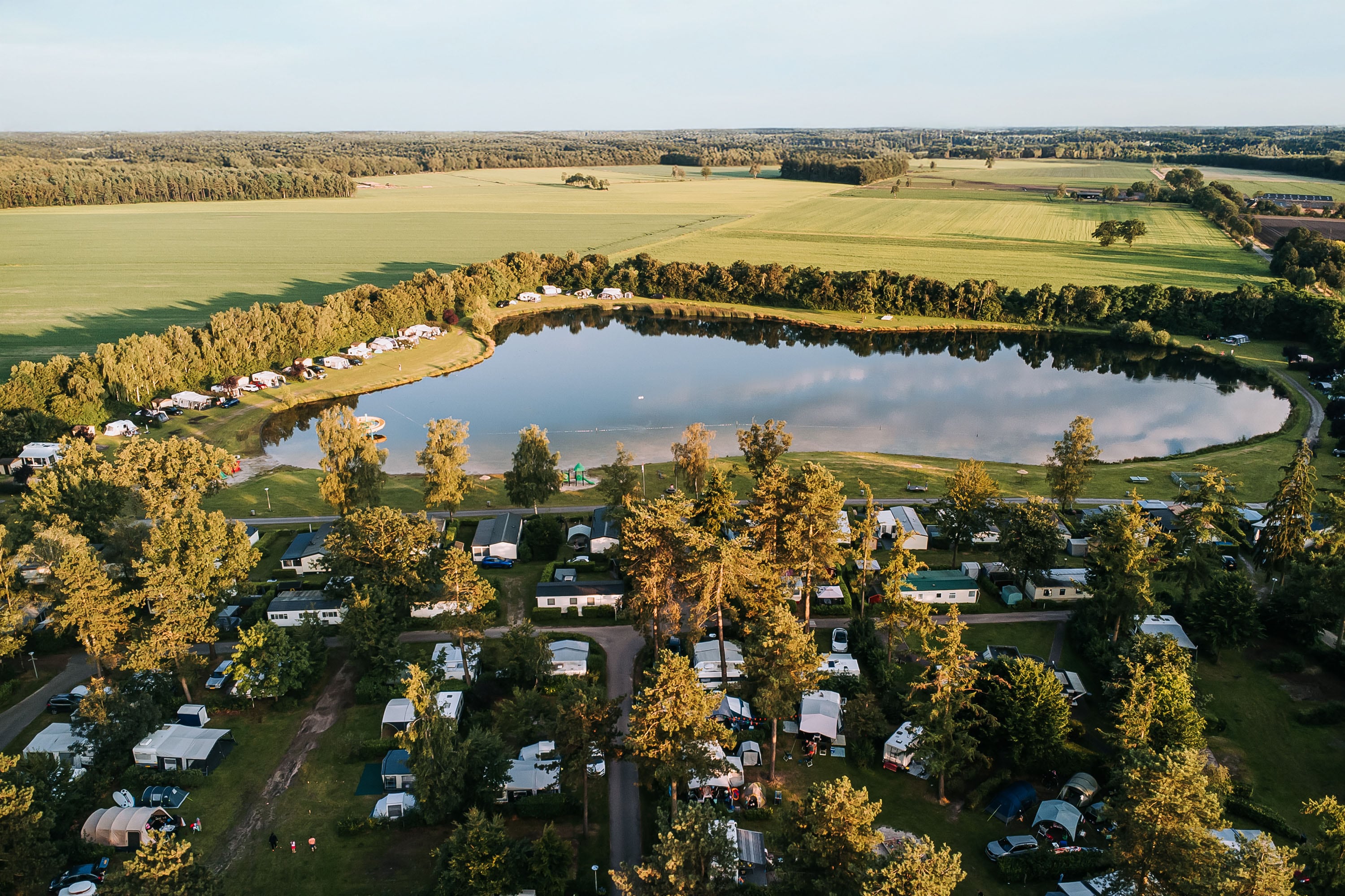 Uitgebreide faciliteiten zoals overdekt zwembad, recreatieplas, binnenspeeltuin en 9 holes golfbaan met afslagkooi. Voor een ontspannen vakantie in een bosrijke omgeving en veel fietsplezier..