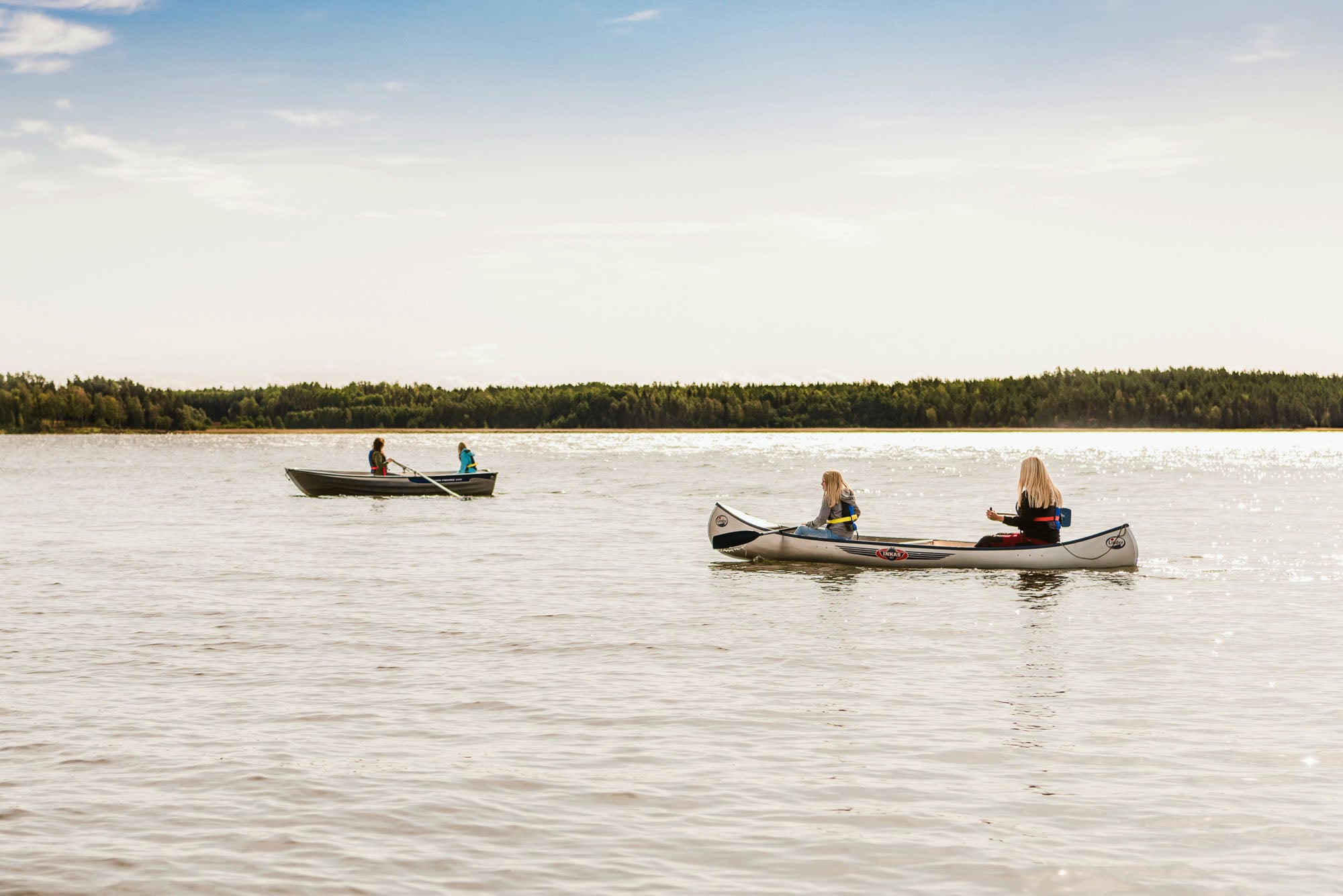 Op deels beboste landtong in het Vänermeer gelegen camping.