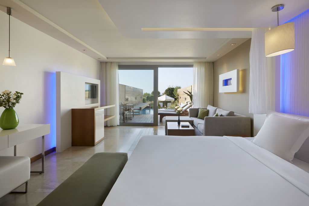 23 m² * Telefoon* * Airconditioning * Televisie * Koelkastje * Kluisje * Koffie-/theezetfaciliteiten * Wifi * Bad en/of douche * Toilet * Föhn * Badjas en slippers * Balkon met zitje * Tegen een meerprijs te boeken met zeezicht (2-3 personen) *Tegen betaling * Premiumkamer zeezicht (2-3 personen) * Ca. 26 m² * Dezelfde faciliteiten als de Deluxe kamer * Nespresso machine * Bungalow (2-4 personen) * Meer privacy * Rustige ligging aan de heuvelzijde * Dezelfde faciliteiten als de deluxe kamer * Badkamer met bad, toilet, föhn, badjas en slippers * Ruim balkon of terras met zitje * Duplex suite met boszicht (2-4 personen) * Ca. 52 m² * Begane grond met woon-/slaapkamer met slaapbank en op de eerste verdieping een slaapkamer * Dezelfde faciliteiten als de standaardkamer * 2 badkamers, 1 met bad en douche en 1 met douche * 2 televisies * Nespresso machine * Groot balkon met ligbedden en eettafel * Tegen een meerprijs boekbaar met zeezicht Sport & Ontspanning * Fitness * Aerobics * Yoga * Beachvolleybal * Boccia * Darts * Biljart* * Tafeltennis * Tennis * Watersporten aan het strand* * Turks bad * Sauna * Binnenzwembad * Bubbelbad * Massages en behandelingen* * Dagelijks entertainment *Tegen betaling Kinderfaciliteiten * 1 kinderbad * Miniclub 6 dagen per week (4-12 jaar) van mei-september * Minidisco 6 dagen per week * Speeltuintje * Babybedjes op aanvraag *Tegen betaling Zwembaden & Strand * 3 buitenzwembaden * 1 binnenzwembad (verwarmd in april, mei, september en oktober) * Zonneterras * Privéstrand * Ligbedden, matrasjes en parasols gratis (zwembad en strand) * Gratis badhanddoekenservice Verzorging Zomer : Amus Hotel & Spa (voorheen Rhodes Bay Hotel & Spa) * Verblijf o.b.v. Logies & Ontbijt: Ontbijt in buffetvorm * Tegen een meerprijs verblijf je o.b.v.