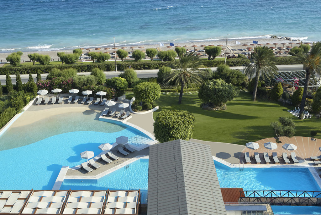 50 meter van het privéstrand, te bereiken via een tunnel * Op ca. 200 meter van het centrum van Ixia * Rhodos-Stad op ca. 4 kilometer * Bushalte voor het hotel * Winkels, restaurants en bars op ca. 200 meter Faciliteiten * 2 gebouwen met maximaal 11 verdiepingen * In 1 gebouw zijn liften aanwezig * 320 kamers * 24-uursreceptie * Bagageruimte * Lobby * Tuin * Wifi in de openbare ruimtes * Kapsalon* * Winkeltjes en minimarkt* * Wasservice* * Doktersservice* op aanvraag *Tegen betaling Restaurants & bars * 1 buffetrestaurant * 3 à-la-carterestaurants voor diner of lunch (vooraf reserveren) * 3 bars Hotelkamers * Deluxe kamer boszicht (1-3 personen) * Ca.