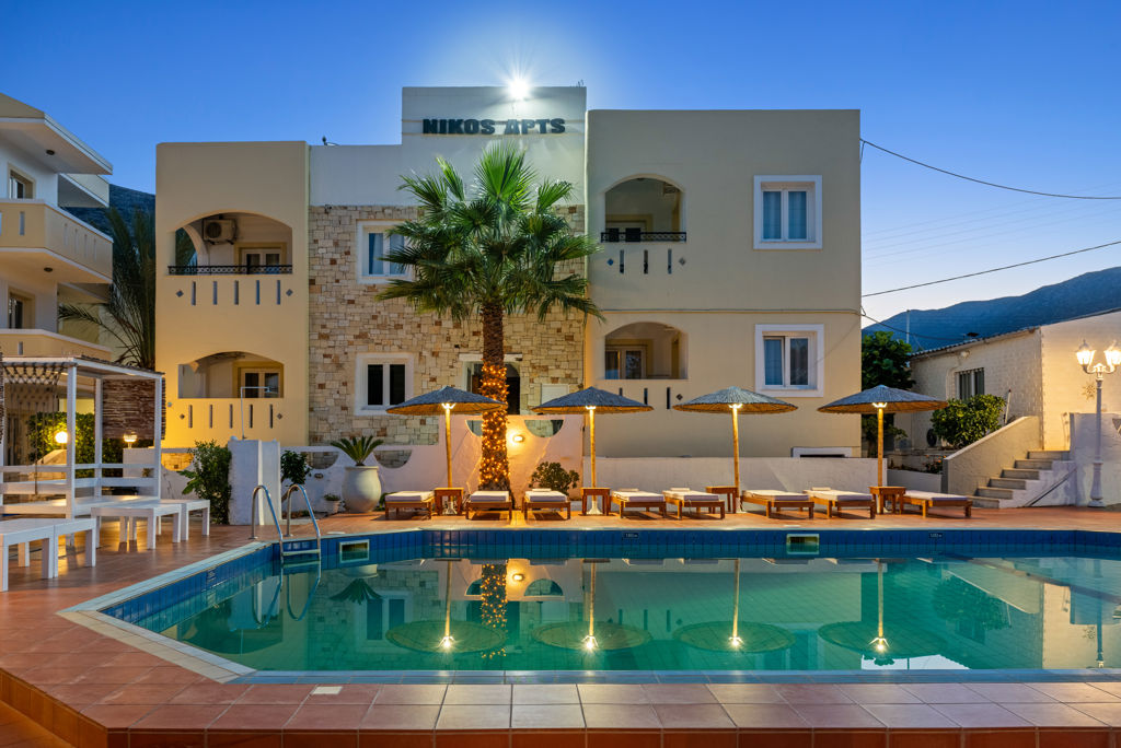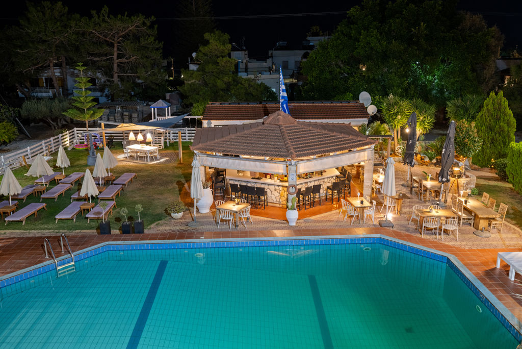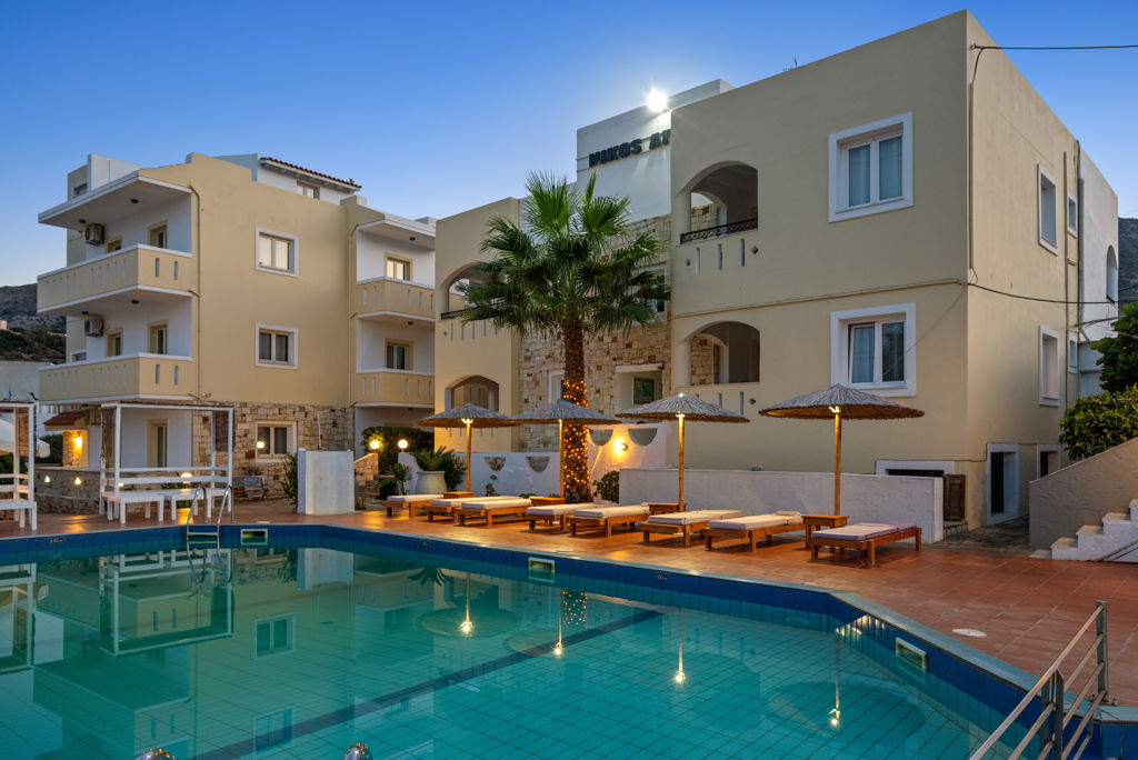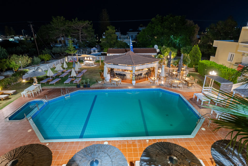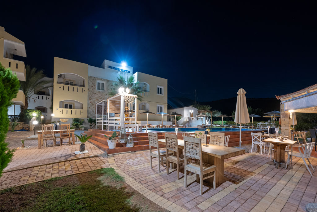 * Ligging * Openbaar strand Stalis Beach op circa 200 meter * Dichtstbijzijnde restaurant op circa 50 meter * Dichtstbijzijnde bar op circa 150 meter * Aquarium op circa 10 kilometer * Star Beach op circa 2 kilometer * Stalis op circa 500 meter * Bushalte op circa 20 meter * Algemeen & faciliteiten * 4 gebouwen * Maximaal 2 verdiepingen * 38 kamers * Receptie * Lobby * Wifi in alle openbare ruimtes * Tuin * Privé parkeergelegenheid * Restaurants & bars * À-la-carterestaurant * Drinkgelegenheid * Poolbar * Activiteiten & ontspanning * Biljart tegen betaling * Zwembaden * Buitenzwembad * Apart kindergedeelte in het buitenzwembad * Zonneterras * Ligbedden * Parasol * Kinderfaciliteiten * Buitenspeeltuin * Babybedje * Verzorging * Logies * Logies & Ontbijt * Ontbijt à la carteHotelkamers * 2-kamerappartement Standaard Zwembadzicht 2A1 * Oppervlakte van circa 33 m² * Zwembadzicht * Airconditioning tegen betaling * Kluisje tegen betaling * Televisie * Telefoon tegen betaling * Kitchenette * 2-pits kooktoestel * Broodrooster * Koffie- en theefaciliteiten * Koelkast * Badkamer met douche, toilet en föhn * Wifi * Balkon (zitje) * 2-kamerappartement Standaard 2AZ * Oppervlakte van circa 33 m² * Tuinzicht * Airconditioning tegen betaling * Kluisje tegen betaling * Televisie * Telefoon tegen betaling * Kitchenette * 2-pits kooktoestel * Broodrooster * Koffie- en theefaciliteiten * Koelkast * Badkamer met douche, toilet en föhn * Wifi * Balkon (zitje).