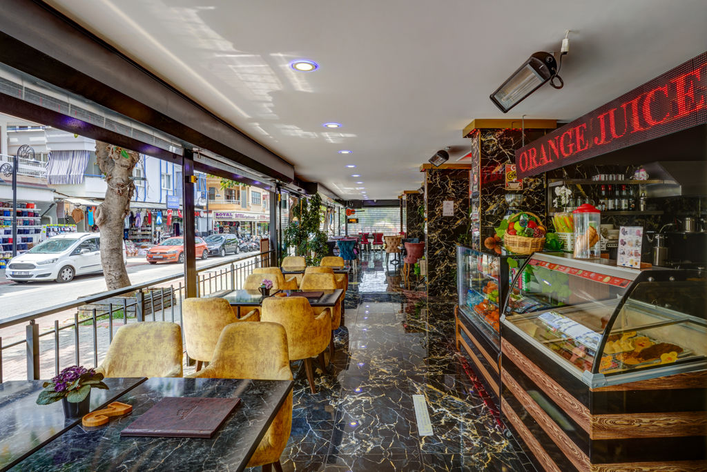 * Ligging * In het centrum van Alanya * Openbaar strand op circa 200 meter * Dichtstbijzijnde bar op circa 250 meter * Aquapark op circa 300 meter * Bushalte op circa 100 meter * Algemeen & faciliteiten * 1 gebouw * Maximaal 7 verdiepingen * 37 kamers * Receptie * 24 uur per dag * Lobby * Lift * Bagageruimte * Wifi in alle openbare ruimtes * Doktersservice tegen betaling * Tuin * Openbare parkeergelegenheid tegen betaling * Restaurants & bars * À-la-carterestaurant * Drinkgelegenheid * Bar * Activiteiten & ontspanning * Spafaciliteiten * Sauna tegen betaling * Turks stoombad tegen betaling * Livemuziek * Verzorging * Logies & Ontbijt * Ontbijt à la carteHotelkamers * 2-persoonskamer Geen balkon D1 * Oppervlakte tussen 16 en 20 m² * Airconditioning * Kluisje * Televisie * Telefoon tegen betaling * Eet- en drinkfaciliteiten * Minibar tegen betaling * Badkamer met douche, toilet, föhn en badslippers * Wifi * Geen balkon of terras * 2-persoonskamer Balkon D3 * Oppervlakte tussen 20 en 25 m² * Airconditioning * Kluisje * Televisie * Telefoon tegen betaling * Eet- en drinkfaciliteiten * Minibar tegen betaling * Badkamer met douche, toilet, föhn en badslippers * Wifi * Balkon of terras (zitje) * 2-persoonskamer Balkon D4 * Oppervlakte tussen 20 en 25 m² * Airconditioning * Kluisje * Televisie * Telefoon tegen betaling * Eet- en drinkfaciliteiten * Minibar tegen betaling * Badkamer met douche, toilet, föhn en badslippers * Wifi * Balkon of terras (zitje) * 2-persoonskamer Balkon (French Bed) D2 * Oppervlakte tussen 16 en 20 m² * Airconditioning * Kluisje * Televisie * Telefoon tegen betaling * Eet- en drinkfaciliteiten * Minibar tegen betaling * Badkamer met douche, toilet, föhn en badslippers * Wifi * Balkon of terras (zitje).