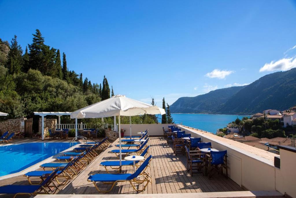 11 kilometer van Lefkas-Stad * Dimosari watervallen op ca. 12 kilometer Faciliteiten * Meerdere gebouwen met maximaal 2 verdiepingen * Geen liften aanwezig * Receptie * Lobby * Tuin * Wifi * Wasservice* * Openbare parkeergelegenheid *Tegen betaling Restaurants & bars * 1 ontbijtruimte * 1 pool-/snackbar Zwembaden * 1 buitenzwembad * Zonneterras * Ligbedden en parasols gratis (zwembad) Hotelkamers * Standaardkamer (1-2 personen) * Ca. 20 m² * Airconditioning* * Televisie * Koelkastje * Wifi * Douche * Toilet * Föhn * Balkon of terras met zitje *Tegen betaling Verzorging Zomer: Hotel Odyssey * Verblijf o.b.v. Logies & Ontbijt: ontbijt in buffetvorm.
