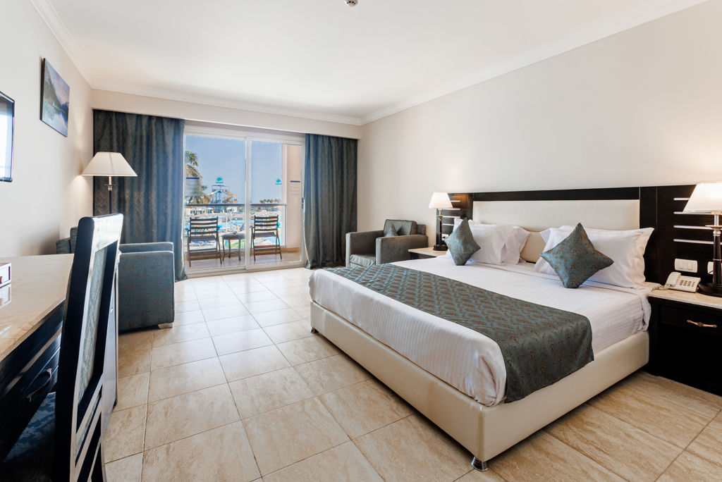 * Ligging * Gelegen aan het privéstrand * Ligbedden * Parasol * Centrum van Hurghada op circa 10 kilometer * Dichtstbijzijnde winkel op circa 3,1 kilometer * Algemeen & faciliteiten * Gedeeltelijk gerenoveerd in 2025 * 3 gebouwen * Maximaal 6 verdiepingen * 459 kamers * Receptie * 24 uur per dag * 4 liften * Niet in elk gebouw een lift * Bagageruimte * Wifi in alle openbare ruimtes * 3 winkels * Minimarkt * Wasservice tegen betaling * Doktersservice tegen betaling * Tuin * Openbare parkeergelegenheid * Restaurants & bars * Buffetrestaurant * 4 à-la-carterestaurants (vooraf reserveren) * Aziatisch restaurant * Indiaas restaurant * Italiaans restaurant * Oriëntaals restaurant * 5 drinkgelegenheden * Beachbar * Lobbybar * 3 poolbars * Activiteiten & ontspanning * Beachvoetbal * Beachvolleybal * Boccia * Darts * Duikcentrum tegen betaling * Fitness tegen betaling * Tafeltennis * Watersporten tegen betaling * Yoga * Spa Center * Sauna tegen betaling * Hamam tegen betaling * Bubbelbad binnen tegen betaling * Massages tegen betaling * Schoonheidsbehandelingen tegen betaling * Animatie voor volwassenen- * Shows- * Livemuziek- * Zwembaden * 8 buitenzwembaden * 2 volwassenenbaden * 2 van deze zwembaden hebben een glijbaan * 3 buitenzwembaden voor kinderen * Eén van deze zwembaden heeft 4 glijbanen * De glijbanen hebben verschillende openingsperiodes * Zonneterras * Ligbedden * Parasol * Badhanddoekenservice * Kinderfaciliteiten * Mini club (3-12 jaar)- * Minidisco- * Buitenspeeltuin * Babybedje op aanvraag via ons contact center * Babysitservice tegen betaling * ter plaatse op aanvraag * Verzorging * All Inclusive * Ontbijt in buffetvorm (07.00-10.30 uur) * Laat ontbijt in buffetvorm (10.30-11.00 uur) * Lunch in buffetvorm (12.30-14.30 uur) * Diner in buffetvorm (18.30-21.30 uur) * Dineren in alle à-la-carterestaurants 1 keer per verblijf * Snacks (12.00-17.00 uur) * Koffie, thee & koekjes (15.00-17.00 uur) * IJs (12.00-17.00 uur) * Middernachtsnack (22.30-01.00 uur) * Selectie lokale (non-)alcoholische drankjes (10.00-00.00 uur) * Tegen betaling: roomservice * Goed om te weten * Faciliteiten zijn gratis beschikbaar bij nabijgelegen accommodatie Sunrise Solara Aqua ParkHotelkamers * 2-persoonskamer Standaard (Back View) DZ1 * Oppervlakte tussen 34 en 37 m² * Geen uitzicht * Airconditioning * Kluisje * Televisie * Telefoon tegen betaling * Eet- en drinkfaciliteiten * Koffie- en theefaciliteiten * Minibar * Badkamer met douche, toilet en föhn * Wifi * Balkon of Frans balkon * 2-persoonskamer Superior Zwembadzicht DSP * 2-persoonskamer Superior Zijzeezicht DSI * 2-persoonskamer Deluxe Zeezicht DDM * 2-persoonskamer Swimup Zwembadzicht DWP * Oppervlakte van circa 50 m² * Zwembadzicht * 2 slaapkamers * Airconditioning * Kluisje * Televisie * Telefoon tegen betaling * Eet- en drinkfaciliteiten * Koffie- en theefaciliteiten * Minibar * Badkamer met douche, toilet en föhn * Wifi * Terras (zitje) * Directe toegang tot het gedeelde zwembad * Familiekamer Stadszicht F1 * Oppervlakte van circa 48 m² * Stadszicht * 2 slaapkamers * Airconditioning * Kluisje * Televisie * Telefoon tegen betaling * Eet- en drinkfaciliteiten * Koffie- en theefaciliteiten * Minibar * Badkamer met douche, toilet en föhn * Wifi * Terras (zitje) * Familiekamer Superior Tuinzicht FSG * Familiekamer Superior Zwembadzicht FSP.
