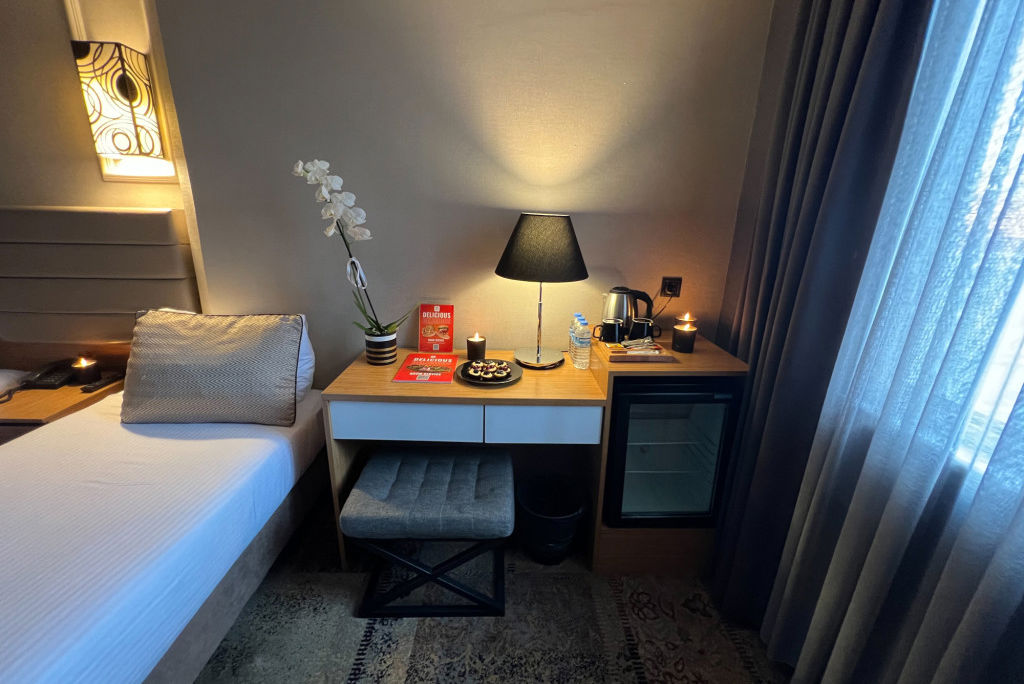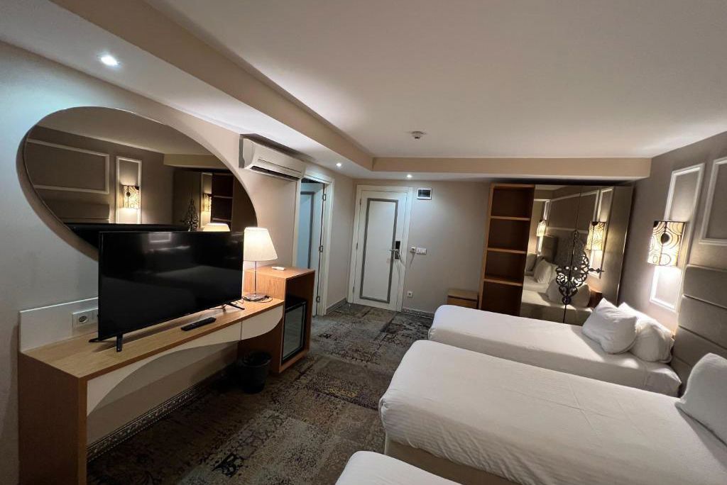 * Ligging * Gelegen in de wijk Findikzade * Winkelcentrum op circa 400 meter * Grand Bazaar op circa 2 kilometer * Blue Mosque op circa 4 kilometer * Taksim Square op circa 6 kilometer * Bushalte op circa 200 meter * Taxistandplaats op circa 500 meter * Treinstation op circa 200 meter * Algemeen & faciliteiten * 1 gebouw * Maximaal 7 verdiepingen * 70 kamers * Receptie * Lobby * 3 liften * Bagageruimte * Wifi in alle openbare ruimtes * Tuin * Restaurants & bars * Ontbijtruimte * Verzorging * Logies & Ontbijt * Ontbijt in buffetvorm (07.00-10.00 uur)Hotelkamers * 2-persoonskamer Standaard DZ * Oppervlakte van circa 25 m² * Airconditioning * Kluisje * Televisie * Telefoon tegen betaling * Eet- en drinkfaciliteiten * Koffie- en theefaciliteiten * Minibar * Badkamer douche in bad, toilet, föhn en badjassen * Wifi * Balkon of terras * 2-persoonskamer Standaard (Triple) DZ1 * Oppervlakte van circa 25 m² * Airconditioning * Kluisje * Televisie * Telefoon tegen betaling * Eet- en drinkfaciliteiten * Koffie- en theefaciliteiten * Minibar tegen betaling * Badkamer douche in bad, toilet, föhn en badjassen * Wifi * Balkon of terras.