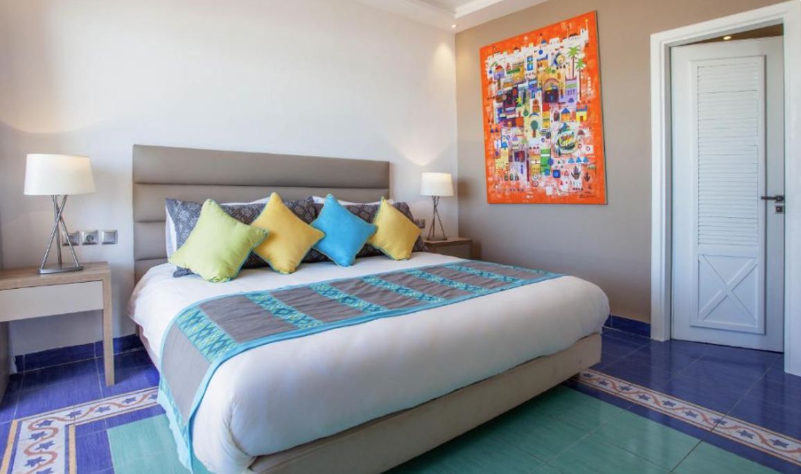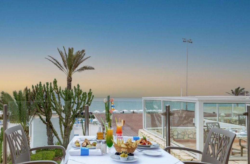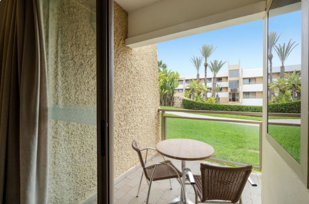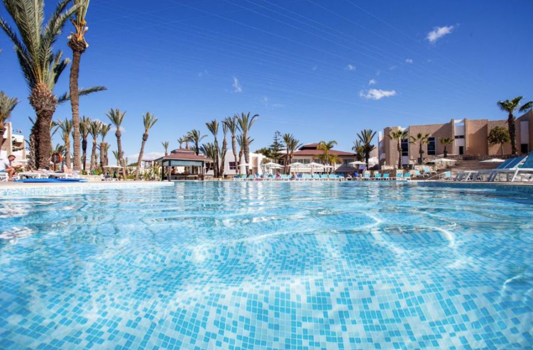 200 meter Faciliteiten * 4 gebouwen met maximaal 4 verdiepingen * Meerdere liften * 425 kamers * 24-uursreceptie * Lobby * Bagageruimte * Tuin * Wifi * Roomservice* * Wasservice* * Kapsalon* *Tegen betaling Restaurants & bars * 1 buffetrestaurant * 3 à-la-carterestaurants (vooraf reserveren) * 4 bars Zwembaden * 1 buitenzwembad (verwarmd in de winterperiode) * 1 buitenzwembad (verwarmd in de winterperiode) met glijbanen (op vaste tijden geopend) * Zonneterras * Privéstrand * Ligbedden en parasols gratis (zwembad en strand) * Badhanddoekenservice (tegen betaling) Hotelkamers * Standaardkamer (1-3 personen) * Ca. 22 m² * Telefoon* * Airconditioning * Televisie * Minibar* * Kluisje* * Wifi* * Bad of douche * Toilet * Balkon of terras met zitje * Tegen een meerprijs boekbaar met tuinzicht, zwembadzicht of zeezicht *Tegen betaling Activiteiten & ontspanning * Fitness * Beachvolleybal * Volleybal * Boccia * Darts * Tafelvoetbal * Biljart * Tafeltennis * Tennis * Hamam* * Sauna* * Bubbelbad* * Massages en behandelingen* * Dagelijks entertainment * Live muziek * Shows *Tegen betaling Kinderfaciliteiten * 1 kinderzwembad * Miniclub 6 dagen per week (4-12 jaar) * Speeltuin * Minidisco * Babybedjes (op aanvraag en op basis van beschikbaarheid) * Babysitservice op aanvraag en tegen betaling Verzorging Winter: Dunes d'Or Ocean Club Agadir * Verblijf o.b.v. All Inclusive: * Ontbijt in buffetvorm (07.00-10.00 uur) * Lunch in buffetvorm (12.30-14.30 uur) * Diner in buffetvorm (19.00-21.30 uur) * Diverse snacks (16.00-17.00 uur) * Koffie/thee en koekjes op vaste tijden * Tijdens je verblijf mag je 1x à-la-carte dineren (vooraf reserveren) * Geselecteerde lokale (non-)alcoholische dranken (10.00-23.00 uur) * Tegen betaling: alle consumpties na 23.00 uur, import drankjes en roomservice.