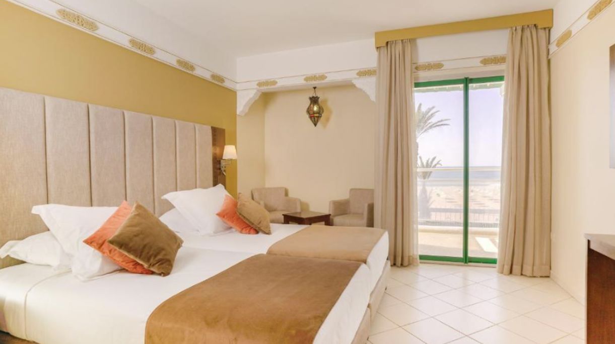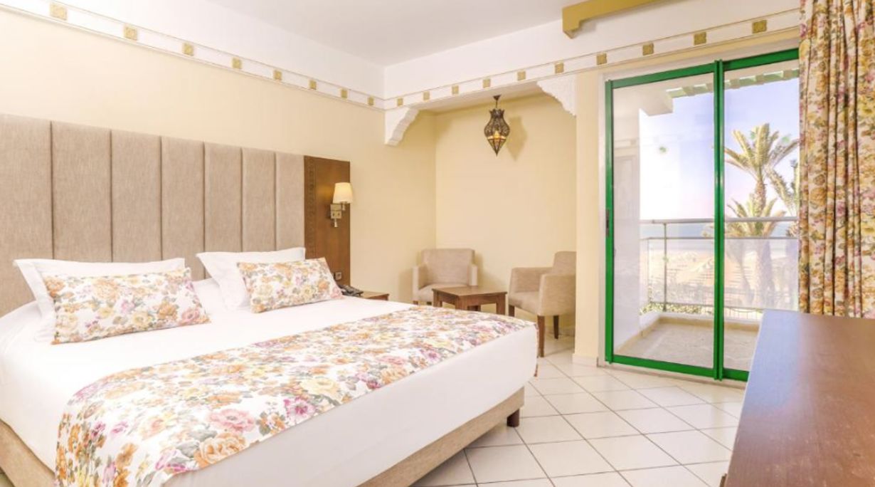 * Ligging * Gelegen aan het openbare strand * Ligbedden met matrasjes * Parasol * Centrum van Agadir op circa 500 meter * Dichtstbijzijnde winkel op circa 200 meter * Supermarkt op circa 100 meter * Dichtstbijzijnde restaurant op circa 200 meter * Bushalte op circa 50 meter * Algemeen & faciliteiten * Meerdere gebouwen * Maximaal 3 verdiepingen * 446 kamers * Receptie * 24 uur per dag * Lobby * 2 liften * Niet in elk gebouw een lift * Wifi in alle openbare ruimtes * Winkel * Wasservice tegen betaling * Doktersservice tegen betaling * op aanvraag * Tuin * Restaurants & bars * Buffetrestaurant * 3 à-la-carterestaurants (vooraf reserveren) * Italiaans restaurant * Marokkaans restaurant * Visrestaurant * 4 drinkgelegenheden * Cocktailbar * Discobar tegen betaling * Pianobar tegen betaling * Poolbar * Activiteiten & ontspanning * Fitness * Tafeltennis * Watersporten tegen betaling * Spa Center * Sauna tegen betaling * Hamam tegen betaling * Massages tegen betaling * Schoonheidsbehandelingen tegen betaling * Animatie voor volwassenen * Zwembaden * Buitenzwembad * Verwarmd tussen ca. december en maart * Buitenzwembad voor kinderen * Zonneterras * Ligbedden * Parasol * Badhanddoekenservice gratis met borg * Kinderfaciliteiten * Mini club (4-12 jaar) * 7 keer per week * Minidisco * Buitenspeeltuin * Verzorging * Logies & Ontbijt * Ontbijt in buffetvorm * Halfpension * Ontbijt in buffetvorm * Diner in buffetvorm * All Inclusive * Ontbijt in buffetvorm (06.30-10.00 uur) * Laat continentaal ontbijt (10.00-11.00 uur) * Lunch in buffetvorm (12.30-15.00 uur) * Diner in buffetvorm (18.30-21.30 uur) * Dineren in één van de à-la-carterestaurants 1 keer per verblijf * Koffie, thee & koekjes (16.00-17.00 uur) * Selectie lokale (non-)alcoholische drankjes (10.00-00.00 uur) * Tegen betaling: alle consumpties in enkele barsHotelkamers * 2-persoonskamer Standaard DZ * Oppervlakte van circa 26 m² * Airconditioning * Kluisje tegen betaling * Televisie * Telefoon tegen betaling * Eet- en drinkfaciliteiten * Minibar tegen betaling * Badkamer douche in bad, toilet en föhn * Balkon of terras (zitje).