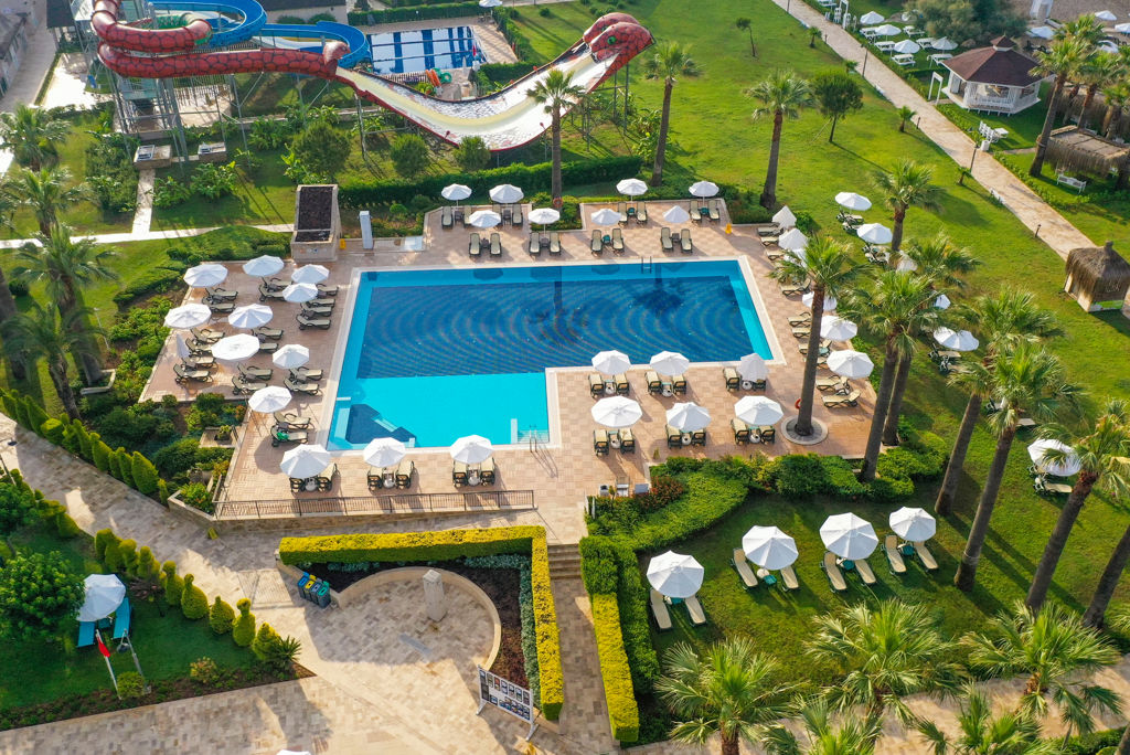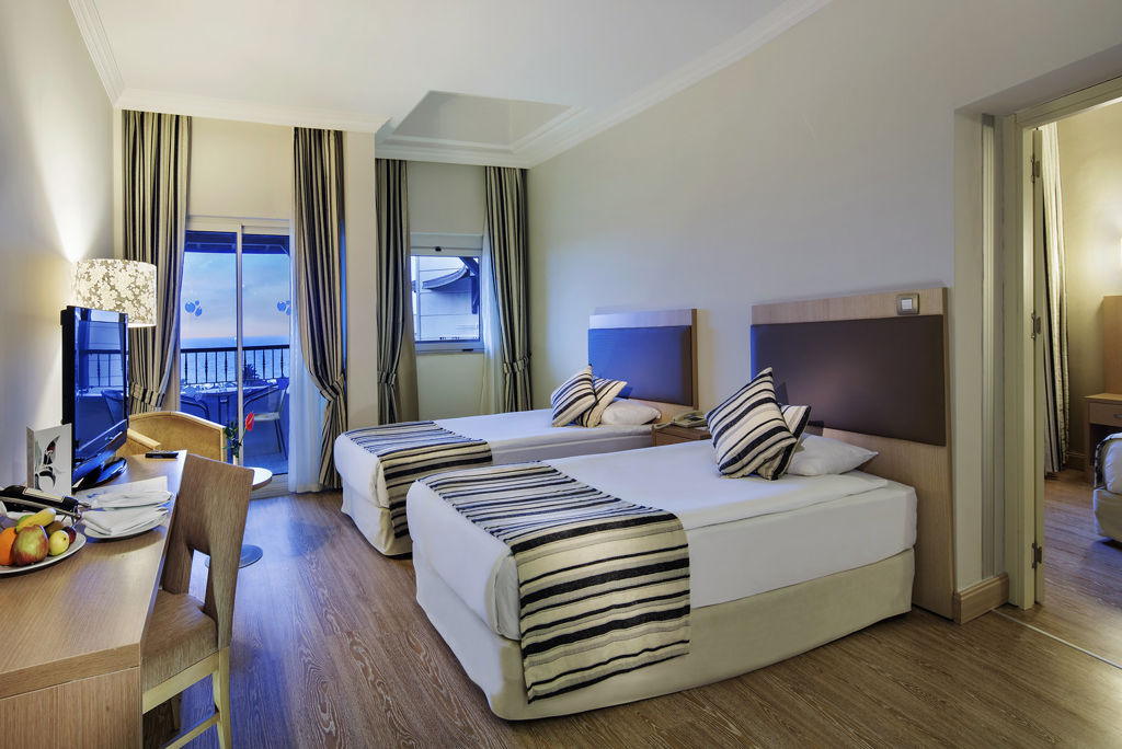 * Ligging * Gelegen aan het privéstrand * Zandstrand * Ligbedden * Parasol * Dichtstbijzijnde winkel op circa 4 kilometer * Dichtstbijzijnde restaurant op circa 4 kilometer * Dichtstbijzijnde bar op circa 4 kilometer * Kadriye op circa 4 kilometer * Shuttleservice naar het centrum (Kadriye) * Algemeen & faciliteiten * 3 gebouwen * Maximaal 6 verdiepingen * 521 kamers * Receptie * 24 uur per dag * Inchecken vanaf 14.00 uur * Uitchecken tot 12.00 uur * Laat uitchecken tegen betaling * Lobby met zitgedeelte * 6 liften * Lift in elk gebouw * Bagageruimte * Doucheruimte bij aankomst en vertrek * Wifi in alle openbare ruimtes * Meerdere winkels * Minimarkt * Wasservice tegen betaling * Doktersservice tegen betaling * Tuin * Openbare parkeergelegenheid * Restaurants & bars * Buffetrestaurant * Meerdere à-la-carterestaurants * Barbecue restaurant * Italiaans restaurant * Mexicaans restaurant * Visrestaurant * Patisserie * Roomservice tegen betaling * 6 drinkgelegenheden * Beachbar * Bierbar * Ierse pub * Lobbybar * Poolbar * Terrace bar * Activiteiten & ontspanning * Aerobics * Basketbal * Beachvolleybal * Biljart tegen betaling * Boccia * Darts * Fitness * Midgetgolf * Tafeltennis * Tafelvoetbal tegen betaling * Tennis tegen betaling * Volleybal * Yoga * Spafaciliteiten * Sauna * Hamam * Bubbelbad binnen * Massages tegen betaling * Gameroom * Animatie voor volwassenen * 7 keer per week * Animatie voor kinderen * 7 keer per week * Shows * Livemuziek * Zwembaden * 4 buitenzwembaden * Eén van deze zwembaden heeft 4 glijbanen * Buitenzwembad voor kinderen * Binnenzwembad * Zonneterras * Ligbedden * Parasol * Badhanddoekenservice * Kinderfaciliteiten * Mini club (4-12 jaar) * Open in het zomerseizoen * 7 keer per week * Minidisco * Buitenspeeltuin * Babysitservice tegen betaling * Verzorging * Ultra All Inclusive * Ontbijt in buffetvorm (07.00-10.00 uur) * Laat ontbijt in buffetvorm (10.00-11.00 uur) * Lunch in buffetvorm (12.30-14.30 uur) * Diner in buffetvorm (18.30-21.30 uur) * Dineren in één van de à-la-carterestaurants 1 keer per verblijf bij een verblijf van minimaal 4 nachten * Snacks (12.00-18.00 uur) * Koffie, thee & koekjes (11.00-22.00 uur) * IJs (11.00-18.00 uur) * Middernachtsnack (21.30-07.00 uur) * Selectie lokale (non-)alcoholische drankjes (24 uur per dag) * Tegen betaling: dineren in één van de à-la-carterestaurants, import drankjes en roomservice * Goed om te weten * Huisdieren zijn niet toegestaanHotelkamers * 2-persoonskamer Voordeel DE * Locatie, formaat, uitzicht en/of faciliteiten kunnen afwijken ten opzichte van andere kamertypes * Oppervlakte circa 23 m² * Landzicht * Airconditioning * Kluisje * Televisie * Telefoon tegen betaling * Eet- en drinkfaciliteiten * Koffie- en theefaciliteiten * Koelkast gratis * Minibar * Badkamer douche, toilet, föhn, badjassen en badslippers * Wifi * Geen balkon * 2-persoonskamer Standaard DZ4 * Oppervlakte tussen 24 en 26 m² * Landzicht * Eén slaapkamer * Airconditioning * Kluisje * Televisie * Telefoon tegen betaling * Eet- en drinkfaciliteiten * Koffie- en theefaciliteiten * Minibar * Badkamer douche, toilet, föhn, badjassen en badslippers * Wifi * Geen balkon * 2-persoonskamer Standaard Stapelbed DZ2 * Oppervlakte circa 28 m² * Landzicht * Eén slaapkamer * Stapelbed * Airconditioning * Kluisje * Televisie * Telefoon tegen betaling * Eet- en drinkfaciliteiten * Koffie- en theefaciliteiten * Minibar * Badkamer douche, toilet, föhn, badjassen en badslippers * Wifi * Balkon of terras (zitje) * 2-persoonskamer Standaard Stapelbed DZ3 * Oppervlakte circa 28 m² * Landzicht * Eén slaapkamer * Stapelbed * Airconditioning * Kluisje * Televisie * Telefoon tegen betaling * Eet- en drinkfaciliteiten * Koffie- en theefaciliteiten * Minibar * Badkamer douche, toilet, föhn, badjassen en badslippers * Wifi * Balkon of terras (zitje) * 2-persoonskamer Standaard Stapelbed DZ1 * Oppervlakte circa 28 m² * Landzicht * Eén slaapkamer * Stapelbed * Airconditioning * Kluisje * Televisie * Telefoon tegen betaling * Eet- en drinkfaciliteiten * Koffie- en theefaciliteiten * Minibar * Badkamer douche, toilet, föhn, badjassen en badslippers * Wifi * Balkon of terras (zitje) * 2-persoonskamer Standaard Landzicht DZL * Oppervlakte circa 23 m² * Landzicht * Airconditioning * Kluisje * Televisie * Telefoon tegen betaling * Eet- en drinkfaciliteiten * Koffie- en theefaciliteiten * Minibar * Badkamer douche, toilet, föhn, badjassen en badslippers * Wifi * Balkon of terras (zitje) * 2-persoonskamer Standaard Zijzeezicht DZI * Oppervlakte circa 23 m² * Zijzeezicht * Airconditioning * Kluisje * Televisie * Telefoon tegen betaling * Eet- en drinkfaciliteiten * Koffie- en theefaciliteiten * Minibar * Badkamer douche, toilet, föhn, badjassen en badslippers * Wifi * Balkon of terras (zitje) * 2-persoonskamer Standaard Zeezicht DZM * Oppervlakte circa 23 m² * Zeezicht * Airconditioning * Kluisje * Televisie * Telefoon tegen betaling * Eet- en drinkfaciliteiten * Koffie- en theefaciliteiten * Minibar * Badkamer douche, toilet, föhn, badjassen en badslippers * Wifi * Balkon of terras (zitje) * Familiekamer Standaard FZ1 * Oppervlakte circa 31 m² * Landzicht * Woon-/slaapkamer * Eén slaapkamer * Airconditioning * Kluisje * Televisie * Telefoon tegen betaling * Eet- en drinkfaciliteiten * Koffie- en theefaciliteiten * Minibar * Badkamer douche, toilet, föhn, badjassen en badslippers * Wifi * Balkon of terras (zitje) * Familiekamer Standaard FZ2 * Oppervlakte circa 31 m² * Landzicht * Woon-/slaapkamer * Eén slaapkamer * Airconditioning * Kluisje * Televisie * Telefoon tegen betaling * Eet- en drinkfaciliteiten * Koffie- en theefaciliteiten * Minibar * Badkamer douche, toilet, föhn, badjassen en badslippers * Wifi * Balkon of terras (zitje) * Familiekamer Standaard FZ * Oppervlakte circa 31 m² * Landzicht * Woon-/slaapkamer * Eén slaapkamer * Airconditioning * Kluisje * Televisie * Telefoon tegen betaling * Eet- en drinkfaciliteiten * Koffie- en theefa