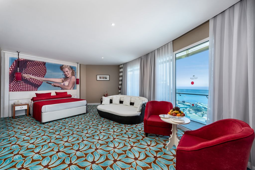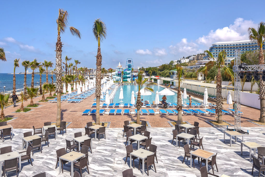 * Ligging * Gelegen aan het privéstrand * Ligbedden met matrasjes * Parasol * Centrum van Avsallar op circa 2 kilometer * Centrum van Alanya op circa 15 kilometer * Dichtstbijzijnde winkel op circa 800 meter * Dichtstbijzijnde restaurant op circa 800 meter * Dichtstbijzijnde bar op circa 800 meter * Algemeen & faciliteiten * 2 gebouwen * Maximaal 6 verdiepingen * 778 kamers * Receptie * 24 uur per dag * Lobby * 16 liften * Lift in elk gebouw * Bagageruimte * Wifi in alle openbare ruimtes tegen betaling * Meerdere winkels * Minimarkt * Wasservice tegen betaling * Doktersservice tegen betaling * Tuin * Privé parkeergelegenheid * Restaurants & bars * Buffetrestaurant * 2 à-la-carterestaurants (vooraf reserveren) * Roomservice tegen betaling * 4 drinkgelegenheden * Beachbar * 2 lobbybars * Poolbar * Activiteiten & ontspanning * Aerobics * Biljart tegen betaling * Boccia * Darts * Fitness * Tafeltennis * Tennis * Watersporten tegen betaling * Spa Center * Binnenzwembad * Gesloten in het zomerseizoen * Sauna * Turks stoombad * Bubbelbad binnen tegen betaling * Massages tegen betaling * Schoonheidsbehandelingen tegen betaling * Animatie * 7 keer per week * Shows * 7 keer per week * Livemuziek * 2 keer per week * Zwembaden * 3 buitenzwembaden * Eén van deze zwembaden is gesloten in het zomerseizoen * Eén van deze zwembaden heeft 7 glijbanen * 2 buitenzwembaden voor kinderen * Eén van deze zwembaden is gesloten in het zomerseizoen * Eén van deze zwembaden heeft 7 glijbanen * Zonneterras * Ligbedden met matrasjes * Parasol * Badhanddoekenservice * Kinderfaciliteiten * Mini club (4-12 jaar) * 7 keer per week * Minidisco * Buitenspeeltuin * Babybedje * Verzorging * Ultra All Inclusive * Ontbijt in buffetvorm (07.00-10.00 uur) * Laat ontbijt in buffetvorm (10.00-11.00 uur) * Lunch in buffetvorm (12.30-14.00 uur) * Diner in buffetvorm (18.30-21.00 uur) * Dineren in één van de à-la-carterestaurants (1x bij een verblijf van minimaal 8 nachten) * Snacks (12.00-16.00 uur) * Koffie, thee & koekjes (12.00-16.00 uur) * IJs (14.00-15.00 uur) * Middernachtsnack (23.00-00.00 uur) * Selectie lokale (non-)alcoholische drankjes (10.00-02.00 uur) * Tegen betaling: import drankjes, turkse koffie, verse vruchtensappen en roomserviceHotelkamers * 2-persoonskamer Voordeel DE * Speciaal tarief * Locatie, formaat, uitzicht en/of faciliteiten kunnen afwijken ten opzichte van andere kamertypes * Oppervlakte van circa 35 m² * Landzicht * Airconditioning * Kluisje * Televisie * Telefoon tegen betaling * Eet- en drinkfaciliteiten * Koffie- en theefaciliteiten * Minibar * Badkamer met bad of douche, toilet en föhn * Wifi tegen betaling * Balkon (zitje) * 2-persoonskamer Standaard DZ * Oppervlakte circa 35 m² * Landzicht * Airconditioning * Kluisje * Televisie * Telefoon tegen betaling * Eet- en drinkfaciliteiten * Koffie- en theefaciliteiten * Minibar * Badkamer met bad of douche, toilet en föhn * Wifi tegen betaling * Balkon (zitje) * 2-persoonskamer Standaard (Child Friendly) DZ1 * Oppervlakte van circa 35 m² * Airconditioning * Kluisje * Televisie * Telefoon tegen betaling * Eet- en drinkfaciliteiten * Koffie- en theefaciliteiten * Minibar * Badkamer met bad of douche, toilet en föhn * Wifi tegen betaling * Balkon (zitje) * 2-persoonskamer Standaard Zijzeezicht DZI * Oppervlakte circa 35 m² * Zijzeezicht * Airconditioning * Kluisje * Televisie * Telefoon tegen betaling * Eet- en drinkfaciliteiten * Koffie- en theefaciliteiten * Minibar * Badkamer met bad of douche, toilet en föhn * Wifi tegen betaling * Balkon (zitje) * 2-persoonskamer Standaard Zeezicht DZM * Oppervlakte circa 35 m² * Zeezicht * Airconditioning * Kluisje * Televisie * Telefoon tegen betaling * Eet- en drinkfaciliteiten * Koffie- en theefaciliteiten * Minibar * Badkamer met bad of douche, toilet en föhn * Wifi tegen betaling * Balkon (zitje) * Familiekamer Standaard FZ * Oppervlakte circa 70 m² * 2 slaapkamers * Airconditioning * Kluisje * Televisie * Telefoon tegen betaling * Eet- en drinkfaciliteiten * Koffie- en theefaciliteiten * Minibar * 2 badkamers * Wifi tegen betaling * Balkon (zitje) * Familiekamer Standaard FZ1 * Locatie, formaat, uitzicht en/of faciliteiten kunnen afwijken ten opzichte van andere kamertypes * Oppervlakte van circa 70 m² * 2 slaapkamers * Airconditioning * Kluisje * Televisie * Telefoon tegen betaling * Eet- en drinkfaciliteiten * Koffie- en theefaciliteiten * Minibar * 2 badkamers * Wifi tegen betaling * Balkon (zitje).