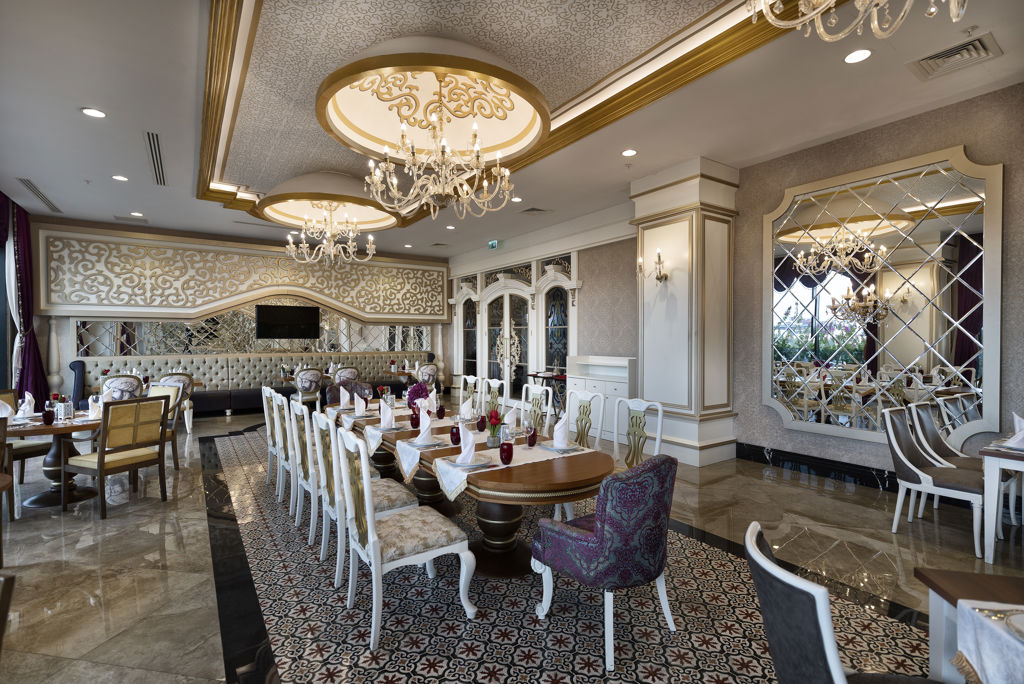 Kort | Adalya Elite Lara Hotel is precies wat je zoekt als je vakantie wilt vieren met een flinke dosis luxe en plezier. Dit vijfsterrenhotel ligt direct aan het strand van Lara en combineert stijlvolle elegantie met een flinke portie waterpret. Denk aan meerdere zwembaden, een golfslagbad, spectaculaire glijbanen en zelfs een klein attractiepark met botsauto's en een reuzenrad. Voor de allerkleinsten is er een leuke miniclub, terwijl volwassenen helemaal tot rust komen in het wellnesscentrum of bij het rustige adults only zwembad. Ook op culinair gebied zit je hier goed. Je kunt uitgebreid dineren in het buffetrestaurant of een tafel reserveren in een van de vijf à la carte restaurants. Of je nu komt om te relaxen of om volop te genieten met het hele gezin, bij Adalya Elite Lara Hotel beleef je een vakantie waar nog lang over nagepraat wordt. |