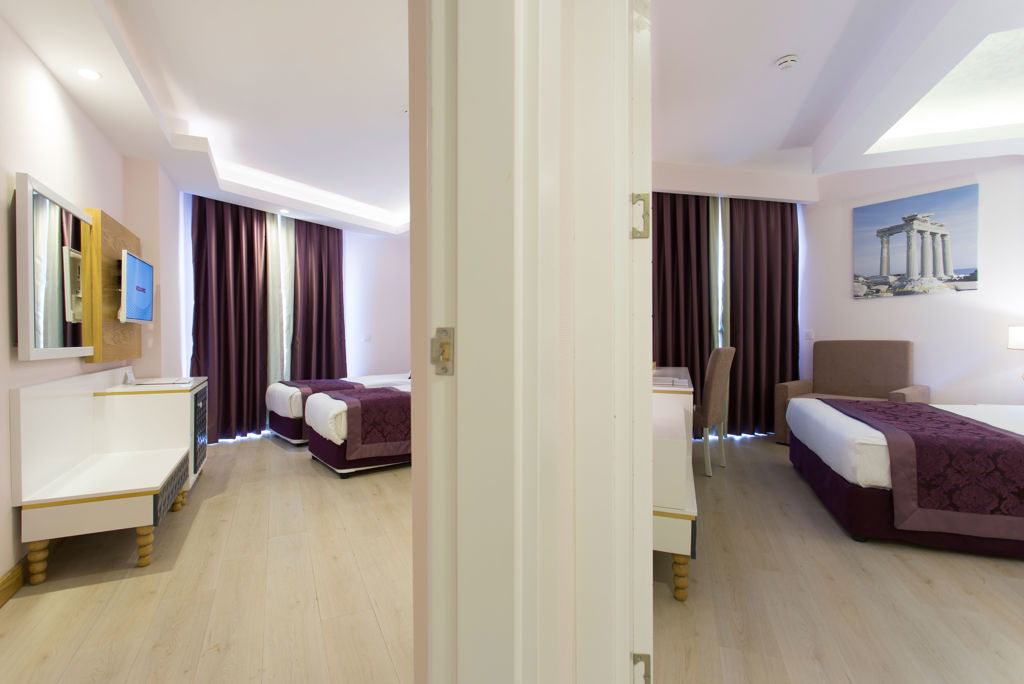 * Ligging * Privéstrand op circa 250 meter * Zandstrand * Ligbedden gratis * Parasol gratis * Centrum op circa 1 kilometer * Dichtstbijzijnde winkel op circa 1 kilometer * Dichtstbijzijnde restaurant op circa 1 kilometer * Dichtstbijzijnde bar op circa 1 kilometer * Titreyengol op circa 1 kilometer * Side op circa 6 kilometer * Manavgat op circa 8 kilometer * Shuttleservice naar het strand gratis * Bushalte op circa 100 meter * Algemeen & faciliteiten * 1 gebouw * Maximaal 6 verdiepingen * 378 kamers * Receptie * 24 uur per dag * Lobby * 6 liften * Bagageruimte * Wifi in alle openbare ruimtes gratis * Meerdere winkels * Minimarkt * Wasservice tegen betaling * Doktersservice tegen betaling * Tuin * Openbare parkeergelegenheid * Restaurants & bars * Buffetrestaurant * 3 à-la-carterestaurants (vooraf reserveren) * Italiaans restaurant * Turks restaurant * Visrestaurant * 4 drinkgelegenheden * 4 bars * Discobar * Lobbybar * Pool-/beachbar * Pool-/snackbar * Activiteiten & ontspanning * Aerobics * Beachvolleybal * Boccia * Darts * Fitness * Midgetgolf * Tafeltennis * Tennis * Watersporten * Spafaciliteiten * Sauna gratis * Hamam gratis * Massages tegen betaling * Schoonheidsbehandelingen tegen betaling * Discotheek * Shows * 6 keer per week * Zwembaden * 2 buitenzwembaden * Eén van deze zwembaden heeft meerdere glijbanen * Buitenzwembad voor kinderen * Verwarmd * Binnenzwembad * Verwarmd * Binnenzwembad voor kinderen * Zonneterras * Ligbedden gratis * Parasol gratis * Badhanddoekenservice gratis * Kinderfaciliteiten * Mini club (4-12 jaar) * Minidisco * Buitenspeeltuin * Verzorging * Ultra All Inclusive * Ontbijt in buffetvorm (07.00-10.00 uur) * Laat ontbijt in buffetvorm (10.00-11.00 uur) * Lunch in buffetvorm (12.30-14.00 uur) * Diner in buffetvorm (19.00-21.00 uur) * Dineren in één van de à-la-carterestaurants (1x bij een verblijf van minimaal 7 nachten) 1 keer per verblijf bij een verblijf van minimaal 7 dagen * Snacks (12.30-15.30 uur) * Koffie, thee & koekjes (10.00-18.00 uur) * IJs (14.00-16.00 uur) * Middernachtsnack (23.00-07.00 uur) * Selectie lokale (non-)alcoholische drankjes (24 uur per dag) * Tegen betaling: import drankjesHotelkamers * 2-persoonskamer Standaard (Child Friendly Room) DZ1 * Oppervlakte van circa 26 m² * Airconditioning * Kluisje * Satelliettelevisie * Telefoon tegen betaling * Eet- en drinkfaciliteiten * Koffie- en theefaciliteiten * Minibar * Badkamer douche, toilet en föhn * Wifi * Balkon (zitje) * 2-persoonskamer Standaard Landzicht DZL * Oppervlakte van circa 26 m² * Landzicht * Airconditioning * Kluisje * Televisie * Telefoon tegen betaling * Eet- en drinkfaciliteiten * Koffie- en theefaciliteiten * Minibar * Badkamer douche, toilet en föhn * Wifi * Balkon (zitje) * 2-persoonskamer Standaard Zijzeezicht DZI * Oppervlakte van circa 26 m² * Zijzeezicht * Airconditioning * Kluisje * Satelliettelevisie * Telefoon tegen betaling * Eet- en drinkfaciliteiten * Koffie- en theefaciliteiten * Minibar * Badkamer douche, toilet en föhn * Wifi * Balkon (zitje) * 2-persoonskamer Standaard Zeezicht DZM * Oppervlakte van circa 26 m² * Zeezicht * Airconditioning * Kluisje * Satelliettelevisie * Telefoon tegen betaling * Eet- en drinkfaciliteiten * Koffie- en theefaciliteiten * Minibar * Badkamer douche, toilet en föhn * Wifi * Balkon (zitje) * Familiekamer Duplex FF * Oppervlakte van circa 36 m² * Meerdere slaapkamers * Airconditioning * Kluisje * Satelliettelevisie * Telefoon tegen betaling * Eet- en drinkfaciliteiten * Koffie- en theefaciliteiten * Minibar * Badkamer douche, toilet en föhn * Wifi * Balkon (zitje).