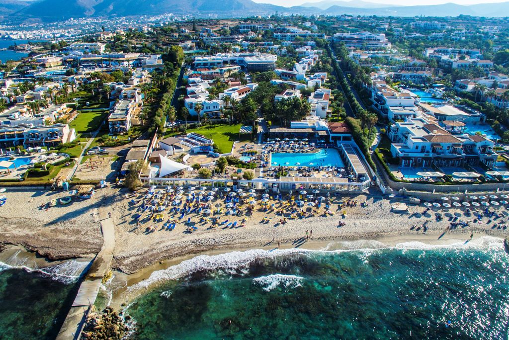 * Ligging * Gelegen aan het privéstrand * Kiezelstrand * Ligbedden met matrasjes gratis * Parasol gratis * Dichtstbijzijnde restaurant op circa 2 kilometer * Chersonissos op circa 2 kilometer * Bushalte op circa 2 kilometer * Algemeen & faciliteiten * 17 gebouwen * Maximaal 1 verdieping * 272 kamers * Receptie * 24 uur per dag * Inchecken vanaf 14.00 uur * Uitchecken tot 11.00 uur * Geen liften * Bagageruimte * Wifi in diverse openbare ruimtes gratis * Winkel (minimarkt) * Wasservice tegen betaling * Doktersservice tegen betaling * Privé parkeergelegenheid gratis * Restaurants & bars * Buffetrestaurant * À-la-carterestaurant * Drinkgelegenheden * Bar * Beachbar * Taverne * 3 drinkgelegenheden * 1 bars * Beachbar * Taverne * Activiteiten & ontspanning * Aerobics gratis * Biljart tegen betaling * Boccia gratis * Boogschieten gratis * Darts gratis * Duikcentrum tegen betaling * Fitness gratis * Tafeltennis gratis * Tennis gratis * Yoga gratis * Spafaciliteiten * Massages tegen betaling * Schoonheidsbehandelingen tegen betaling * Gameroom toegang tegen betaling * Animatie * Shows * Zwembaden * 2 buitenzwembaden * 2 buitenzwembaden voor kinderen * Zonneterras * Ligbedden met matrasjes gratis * Parasol gratis * Badhanddoekenservice gratis * Kinderfaciliteiten * Mini club (4-12 jaar) * 7 keer per week * Minidisco * Buitenspeeltuin * Babybedje op aanvraag via ons contact center gratis * Babysitservice tegen betaling * Verzorging * All Inclusive * Ontbijt in buffetvorm (07.15-10.00 uur) * Lunch in buffetvorm (12.30-14.00 uur) * Diner in buffetvorm (18.30-21.30 uur) * Snacks (11.00-17.00 uur) * Koffie, thee & koekjes * IJs * Selectie lokale (non-)alcoholische drankjes (10.00-00.00 uur) * Tegen betaling: import drankjesHotelkamers * 1-persoonskamer Bungalow EB * Oppervlakte circa 24 m² * Tuinzicht * Airconditioning gratis * Kluisje gratis * Satelliettelevisie * Telefoon tegen betaling * Eet- en drinkfaciliteiten * Koelkast * Badkamer bad of douche, toilet en föhn * Wifi tegen betaling * Balkon of terras (zitje) * 2-persoonskamer Voordeel DE * Speciaal tarief * Locatie, formaat, uitzicht en/of faciliteiten kunnen afwijken ten opzichte van andere kamertypes * 2-persoonskamer Bungalow DB * Oppervlakte circa 24 m² * Tuinzicht * Airconditioning gratis * Kluisje gratis * Satelliettelevisie * Telefoon tegen betaling * Eet- en drinkfaciliteiten * Koelkast * Badkamer bad of douche, toilet en föhn * Wifi tegen betaling * Balkon of terras (zitje) * 2-persoonskamer Bungalow DB1 * Oppervlakte circa 27 m² * Tuinzicht * Airconditioning gratis * Kluisje gratis * Satelliettelevisie * Telefoon tegen betaling * Eet- en drinkfaciliteiten * Koelkast gratis * Badkamer bad of douche, toilet en föhn * Wifi tegen betaling * Balkon of terras (zitje) * Junior suite Standaard JZ * Oppervlakte circa 37 m² * Tuinzicht * Eén slaapkamer * Airconditioning gratis * Kluisje gratis * Satelliettelevisie * Telefoon tegen betaling * Eet- en drinkfaciliteiten * Koelkast * Badkamer bad of douche, toilet en föhn * Wifi tegen betaling * Balkon of terras (zitje).