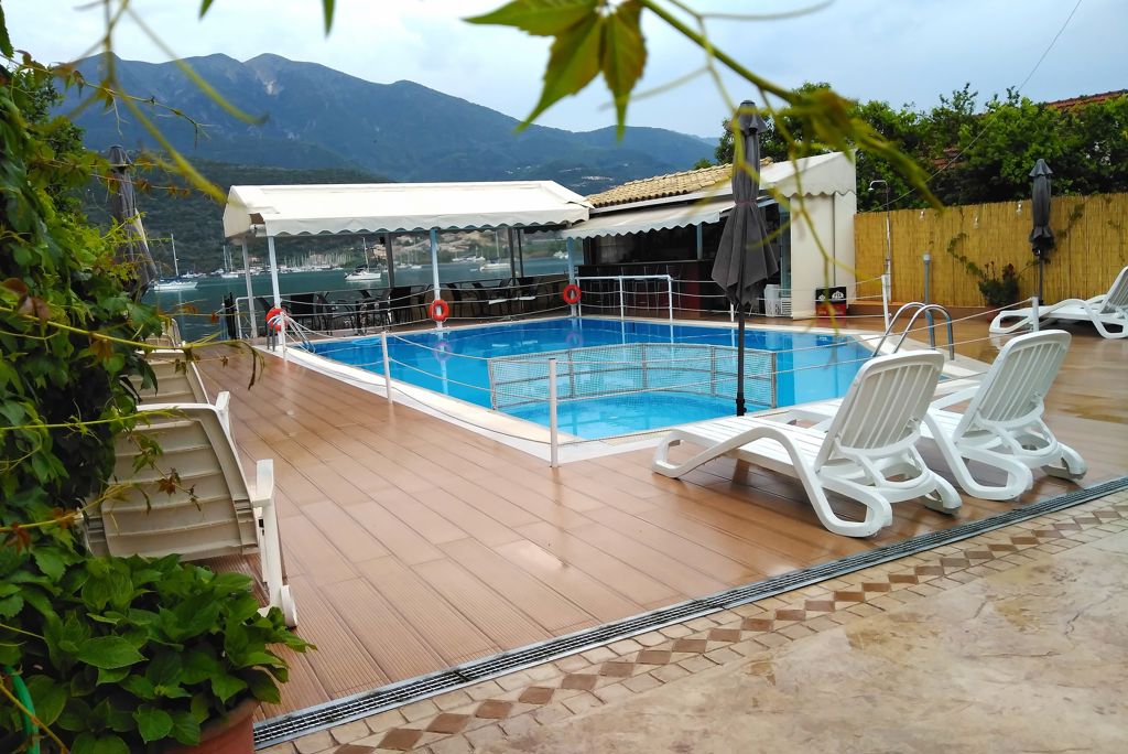 * Ligging * Openbaar strand Desimi op circa 2,5 kilometer * Zandstrand * Kiezelstrand * Dichtstbijzijnde winkel op circa 100 meter * Dichtstbijzijnde restaurant op circa 100 meter * Nidri op circa 7 kilometer * Bushalte op circa 3 kilometer * Algemeen & faciliteiten * 2 gebouwen * Maximaal 2 verdiepingen * 5 kamers * Receptie * Open van 08.30 tot 23.00 uur * Geen liften * Bagageruimte * Wifi in alle openbare ruimtes * Wasservice tegen betaling * Tuin * Privé parkeergelegenheid * Restaurants & bars * Drinkgelegenheid * Poolbar * Zwembaden * Buitenzwembad * Zoetwater * Apart kindergedeelte in het buitenzwembad * Zoetwater * Zonneterras * Ligbedden met matrasjes * Parasol * Kinderfaciliteiten * Babybedje op aanvraag via ons contact center * Verzorging * LogiesHotelkamers * 2-kamerappartement (Maisonette) 2A1 * Oppervlakte circa 62 m² * Bergzicht * In maisonettestijl * Woon-/slaapkamer * Eén slaapkamer * Airconditioning * Kitchenette * 2-pits kooktoestel * Magnetron * Broodrooster * Koffie- en theefaciliteiten * Koelkast * Badkamer met douche, toilet en föhn * Meerdere balkons (meerdere hiervan met zitje).