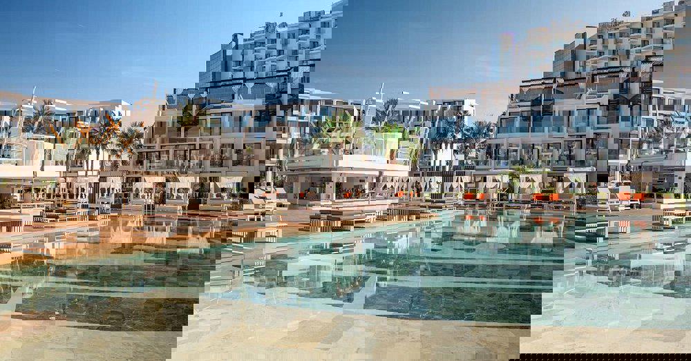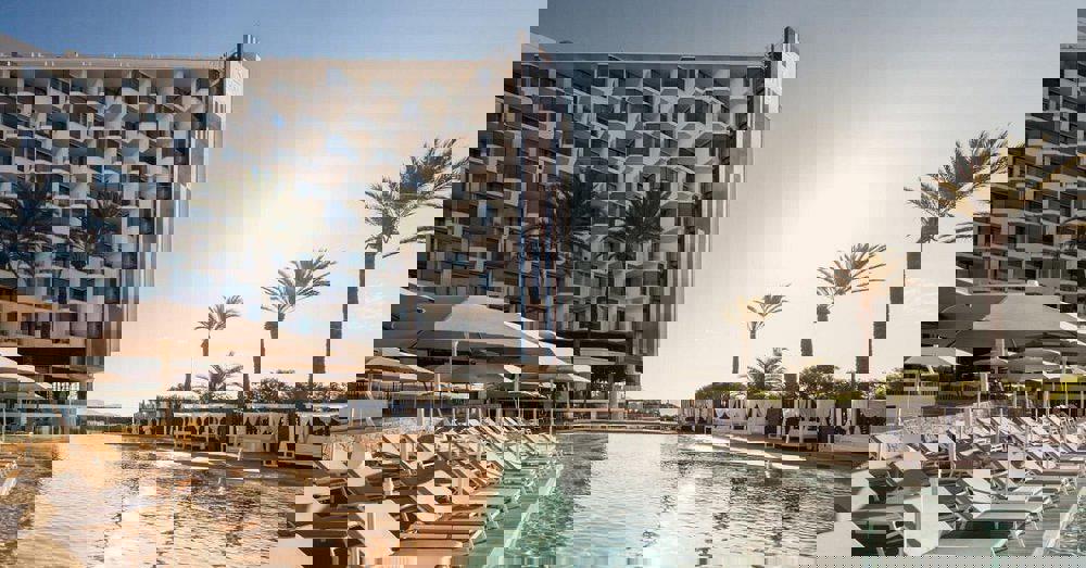 Vanaf hier loop je zó het strand op en geniet je van een relaxte vakantie op een toplocatie. Dit hotel is ideaal voor stellen en families die houden van comfort en Ibiza-stijl. Neem een duik in een van de zwembaden, relax op een ligbed of nip van een cocktail op het dakterras van de skybar. Met vijf restaurants, gezellige bars en stijlvolle kamers voelt iedere dag als een feestje.