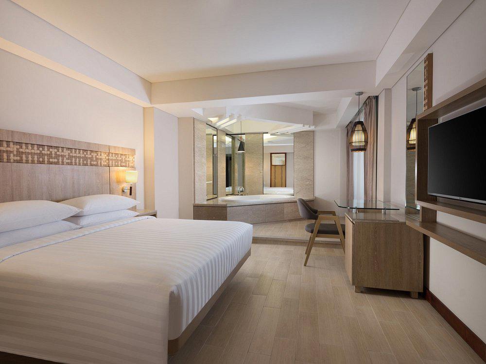Verblijven in een aangename accommodatie in Legian Beach? Hotel Fairfield by Marriott Bali Legian is een luxe 4-sterren hotel, perfect voor een fijne vakantie.