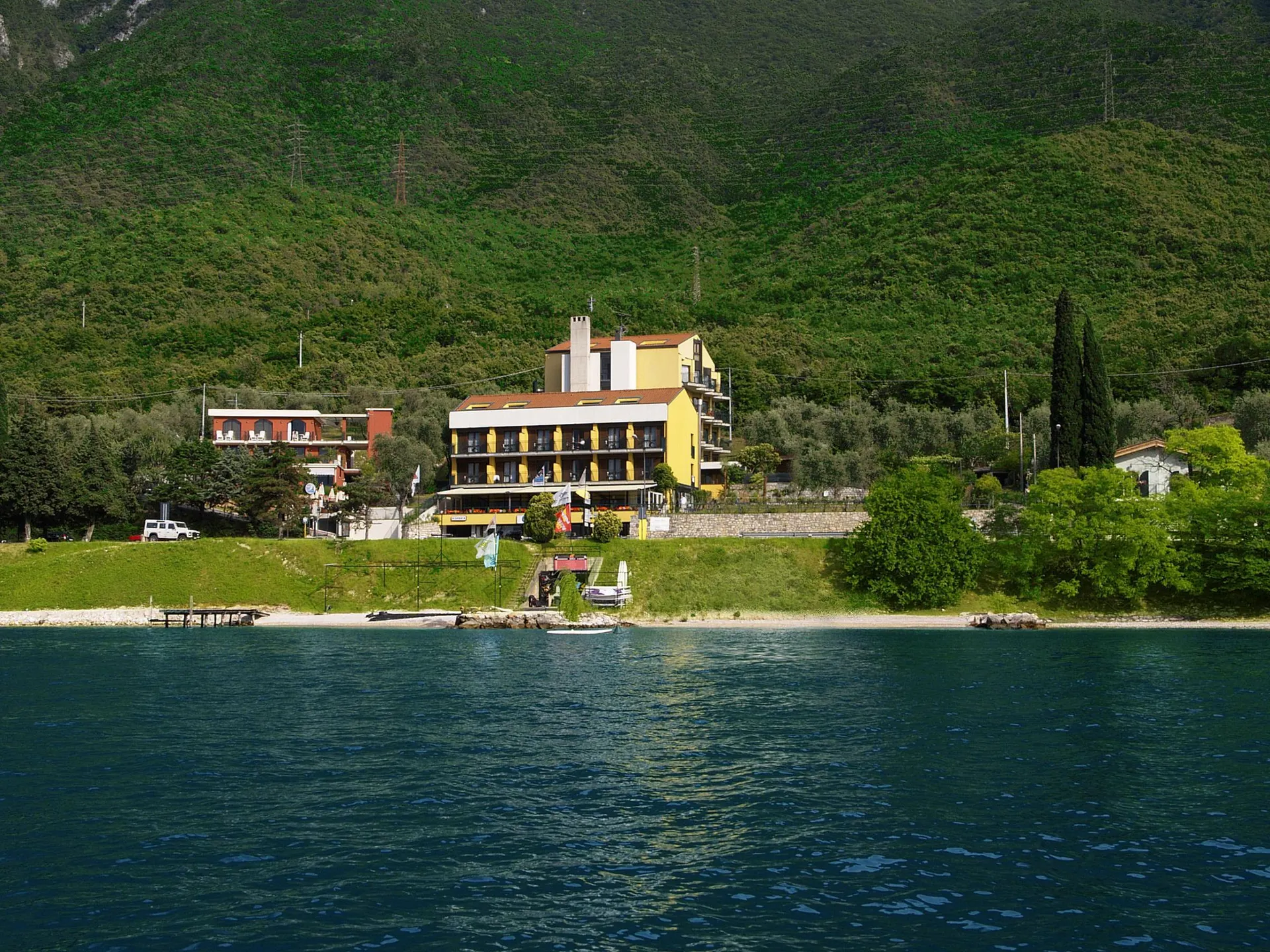 Het hotel ligt direct aan het strand, centraal in Malcesine.