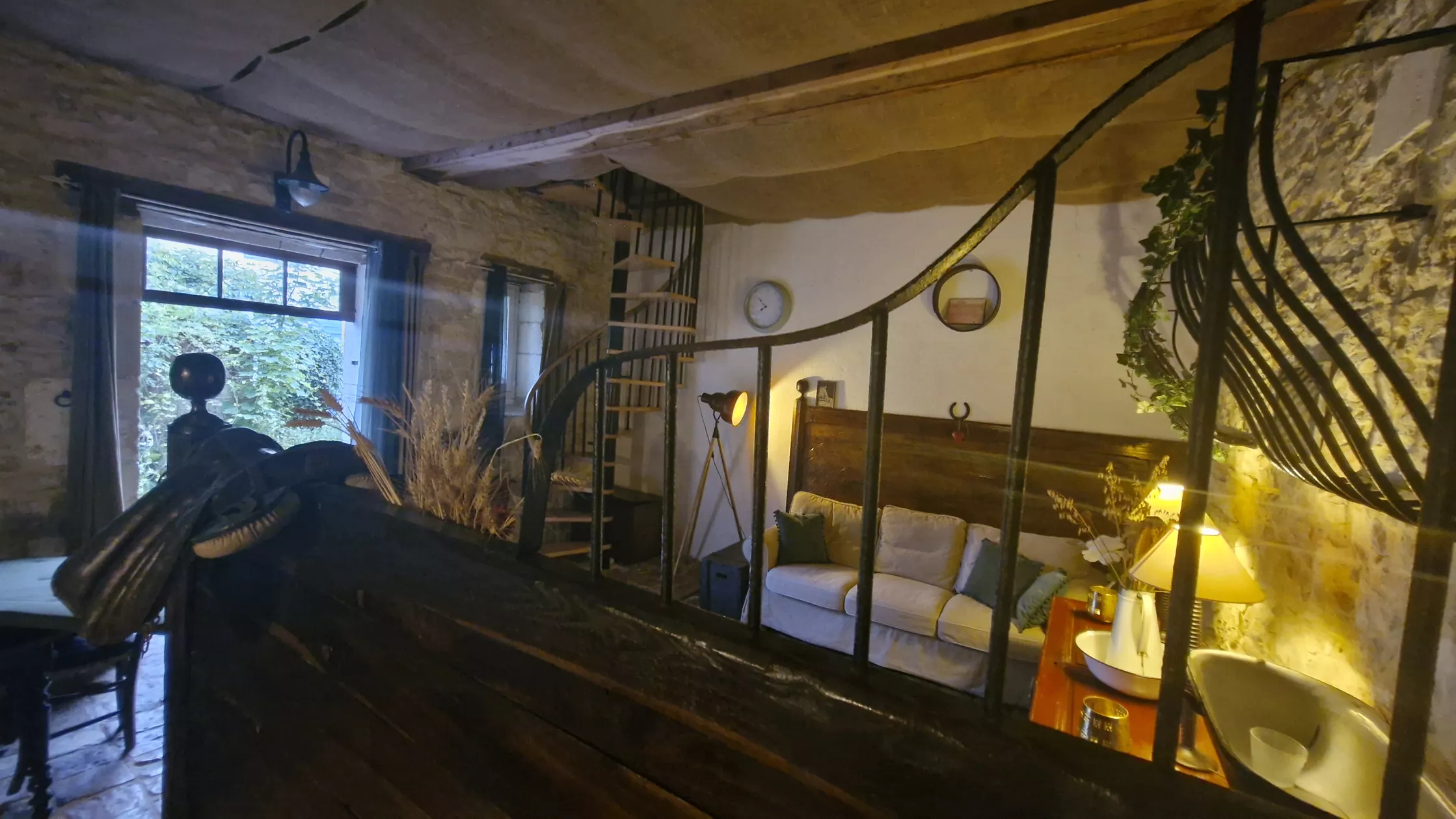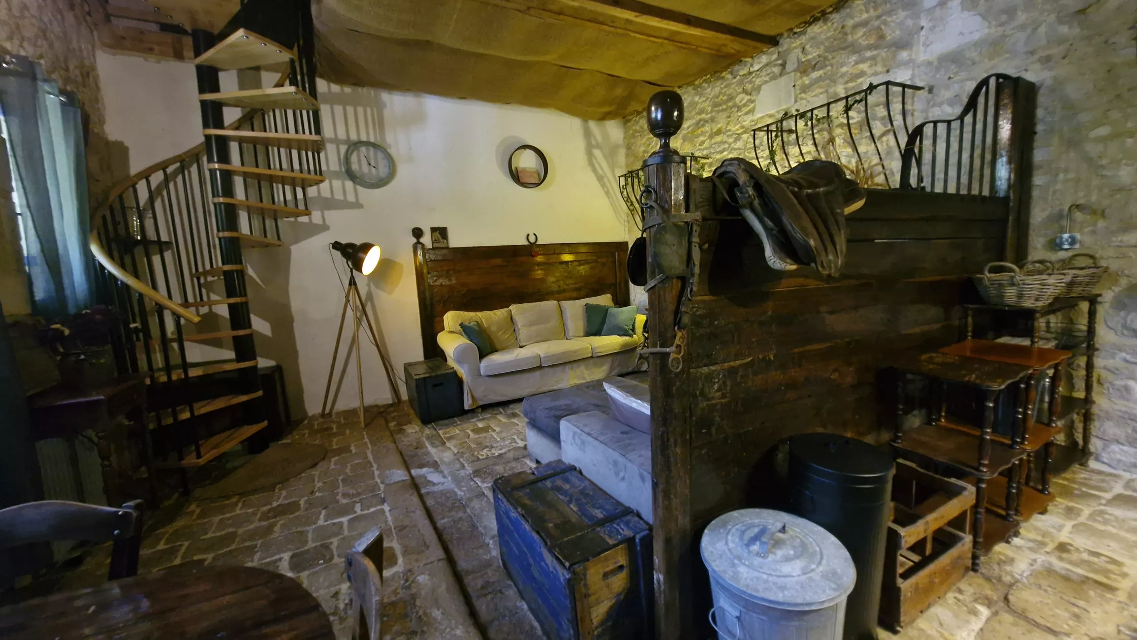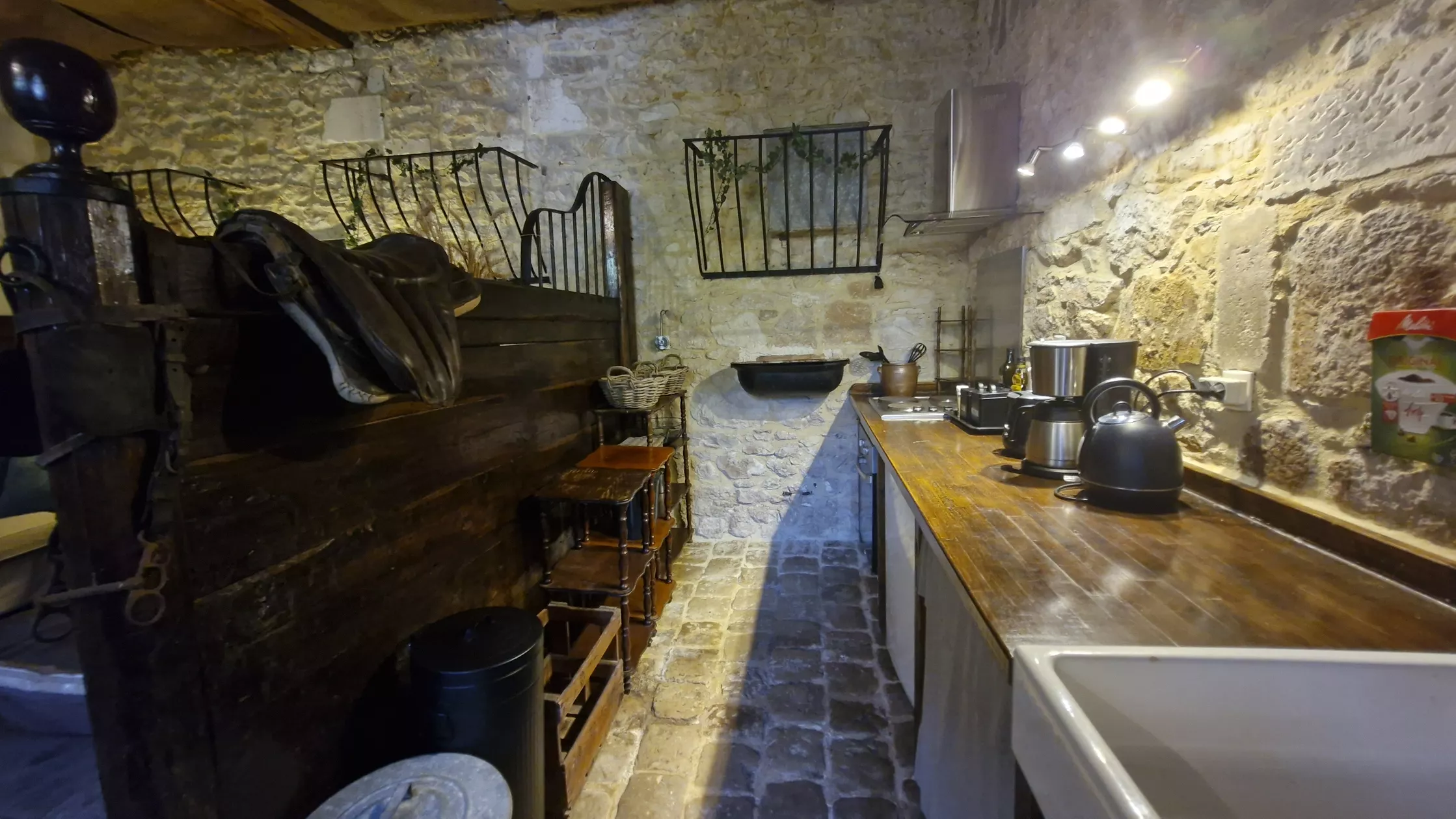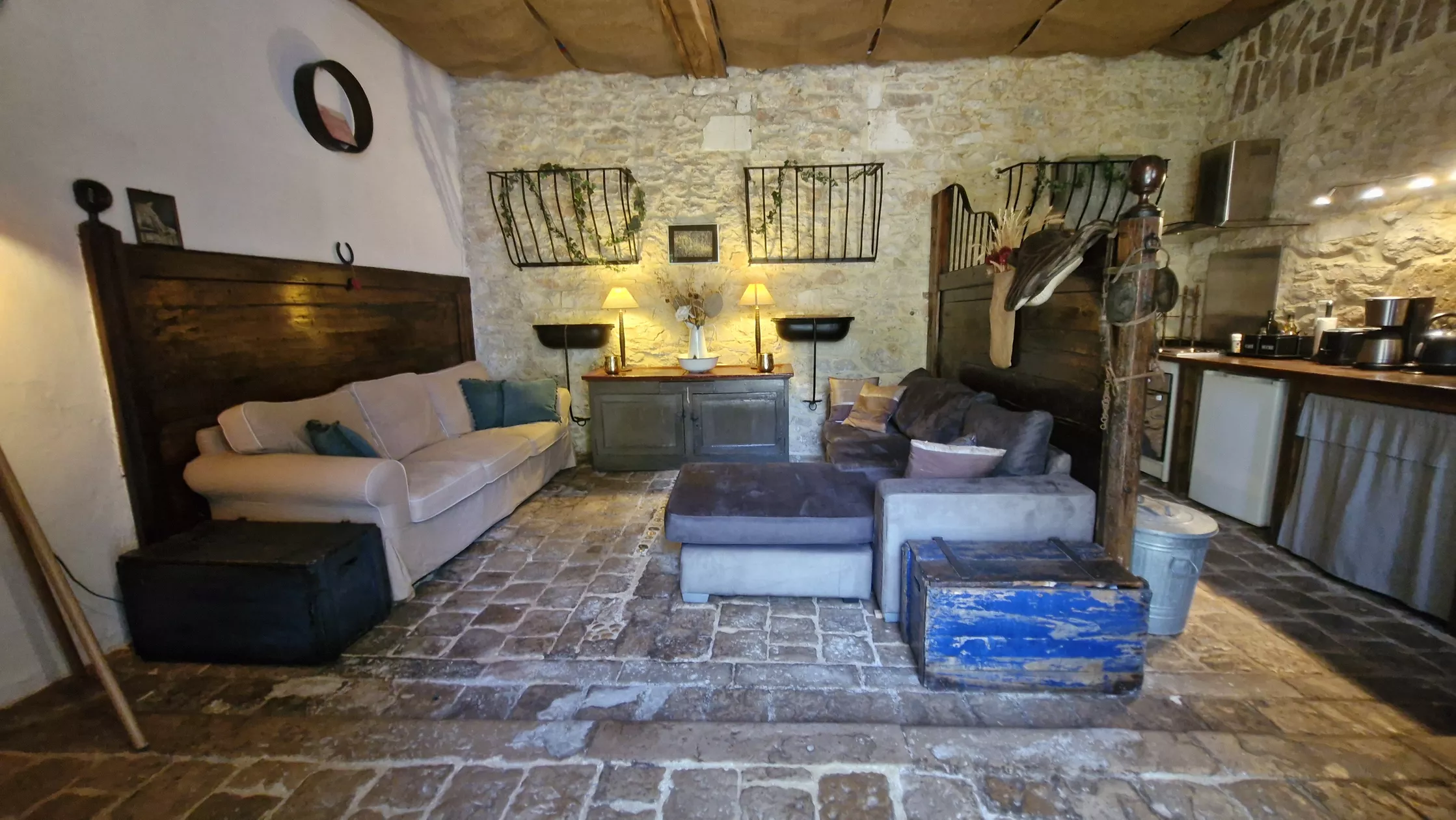 Deze paardenstal is tot een romantische gîte getransformeerd, met het behoud van de nog originele en authentieke elementen als ruiven, voerbakken en vloer