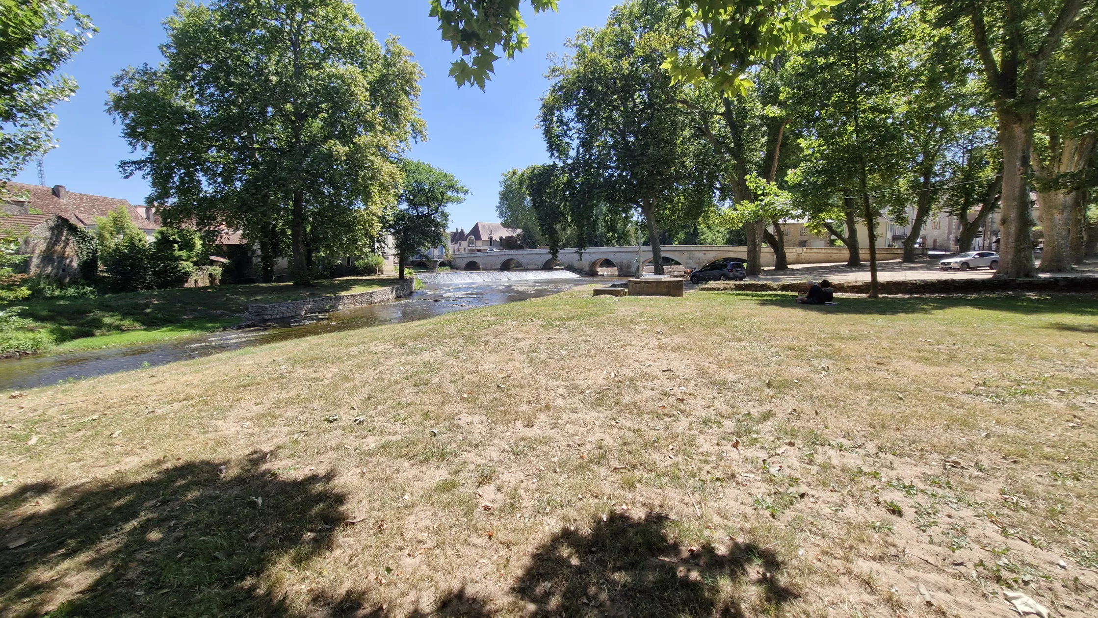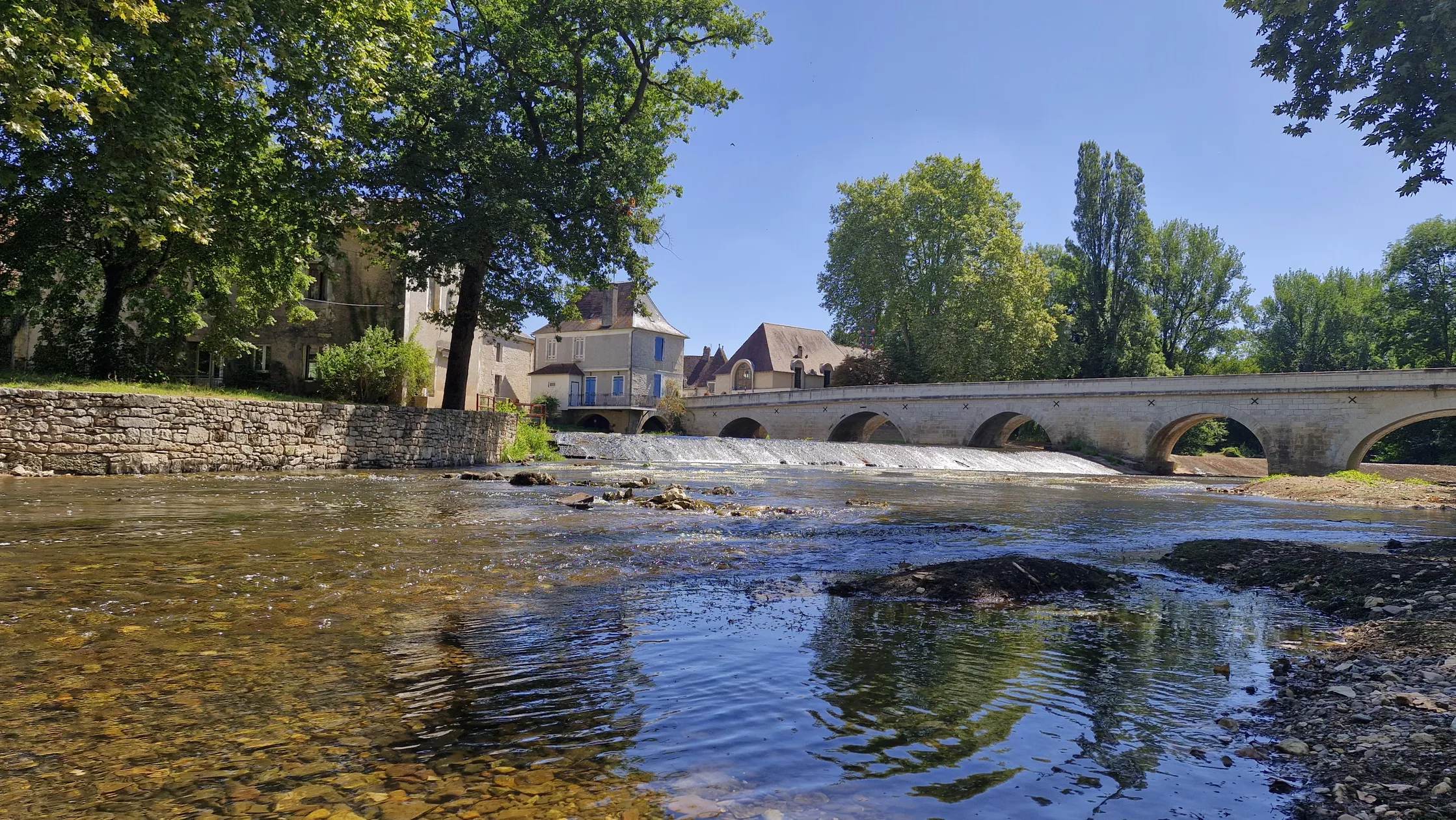aan de rivier de Auvézère met z'n strandje, in de Périgord Blanc in de Dordogne.