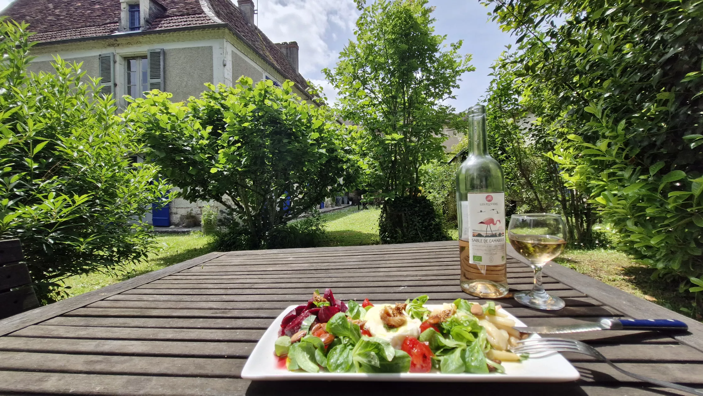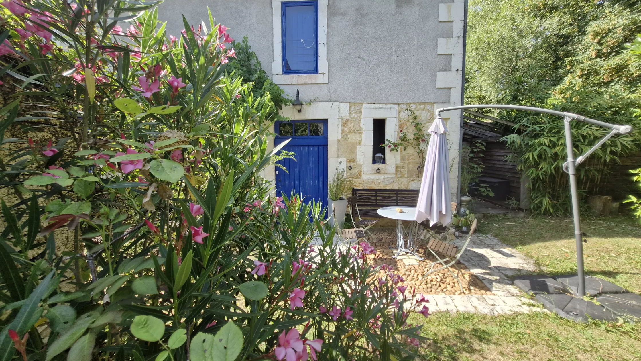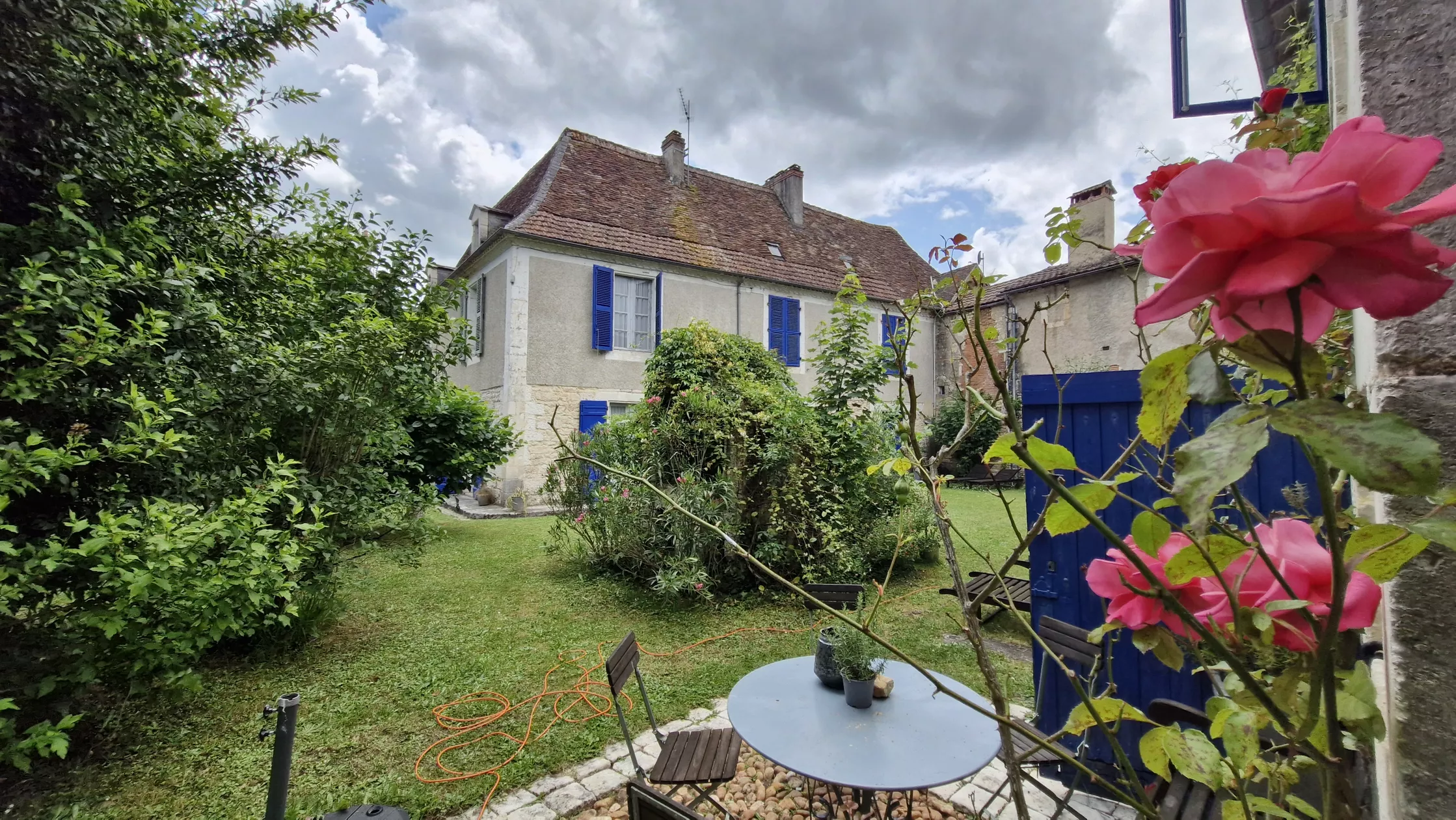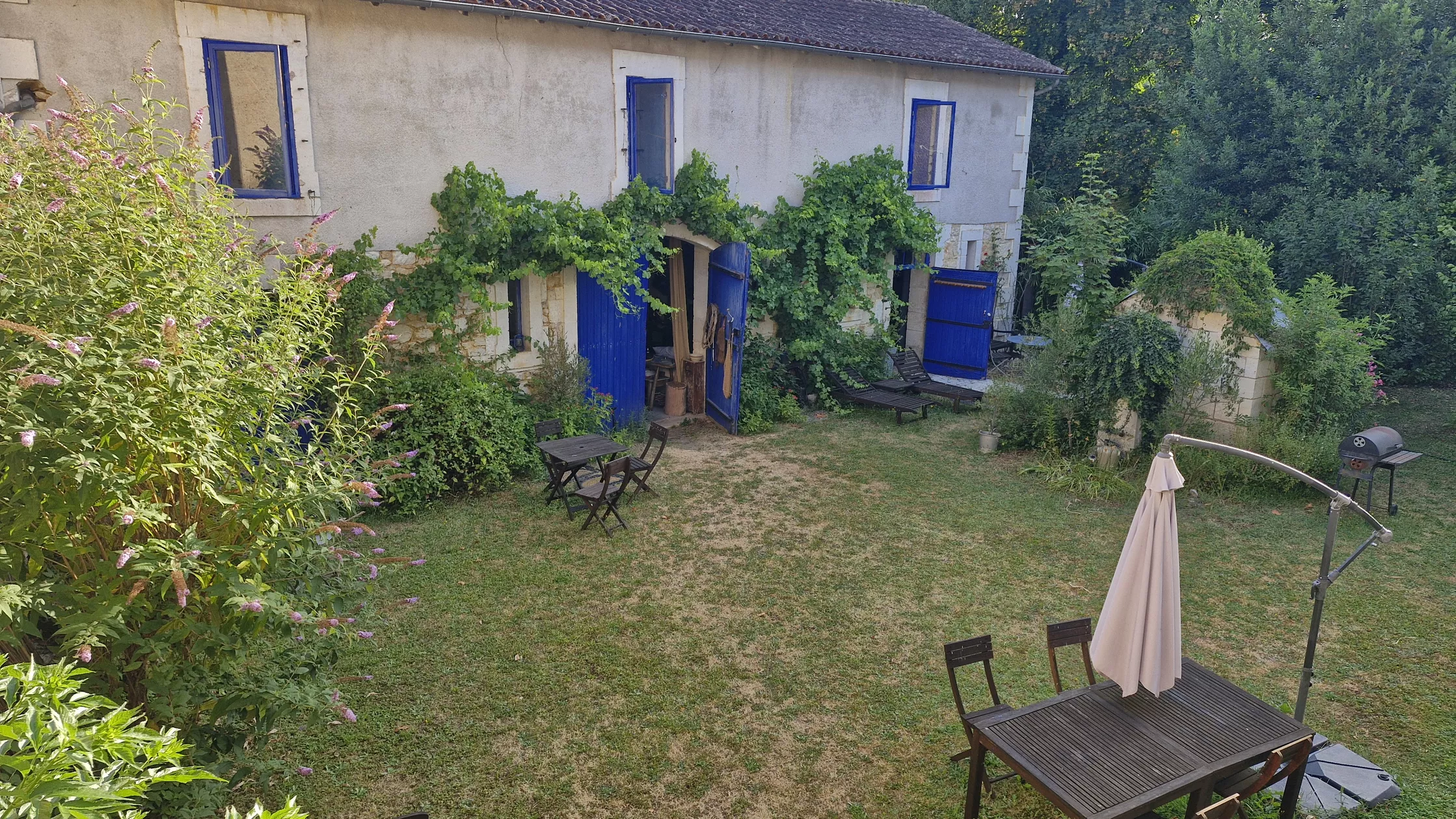 Deze gîte grenst aan de grote binnenplaats en aan de andere kant de nog grotere en ruime tuin met z'n prachtige eeuwen oude bomen, waaronder het zo heerlijk toeven is.
