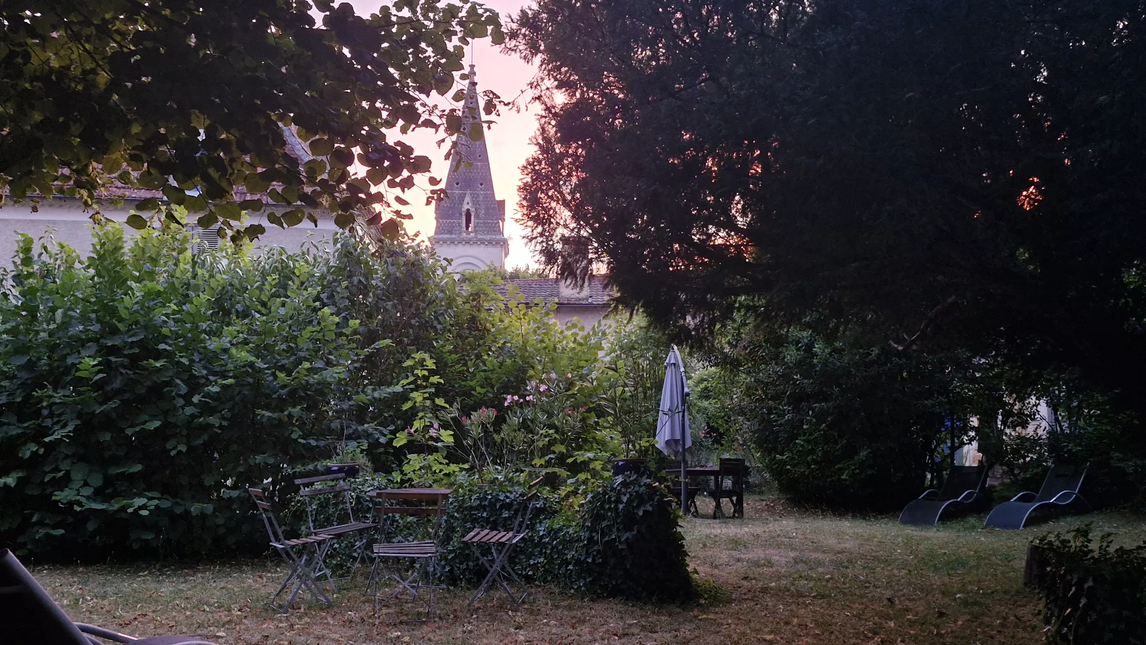 De prachtige tuin met z'n eeuwen oude bomen, heeft de diverse zitjes, eettafels, stoelen en ligstoelen en biedt U de mogelijkheid