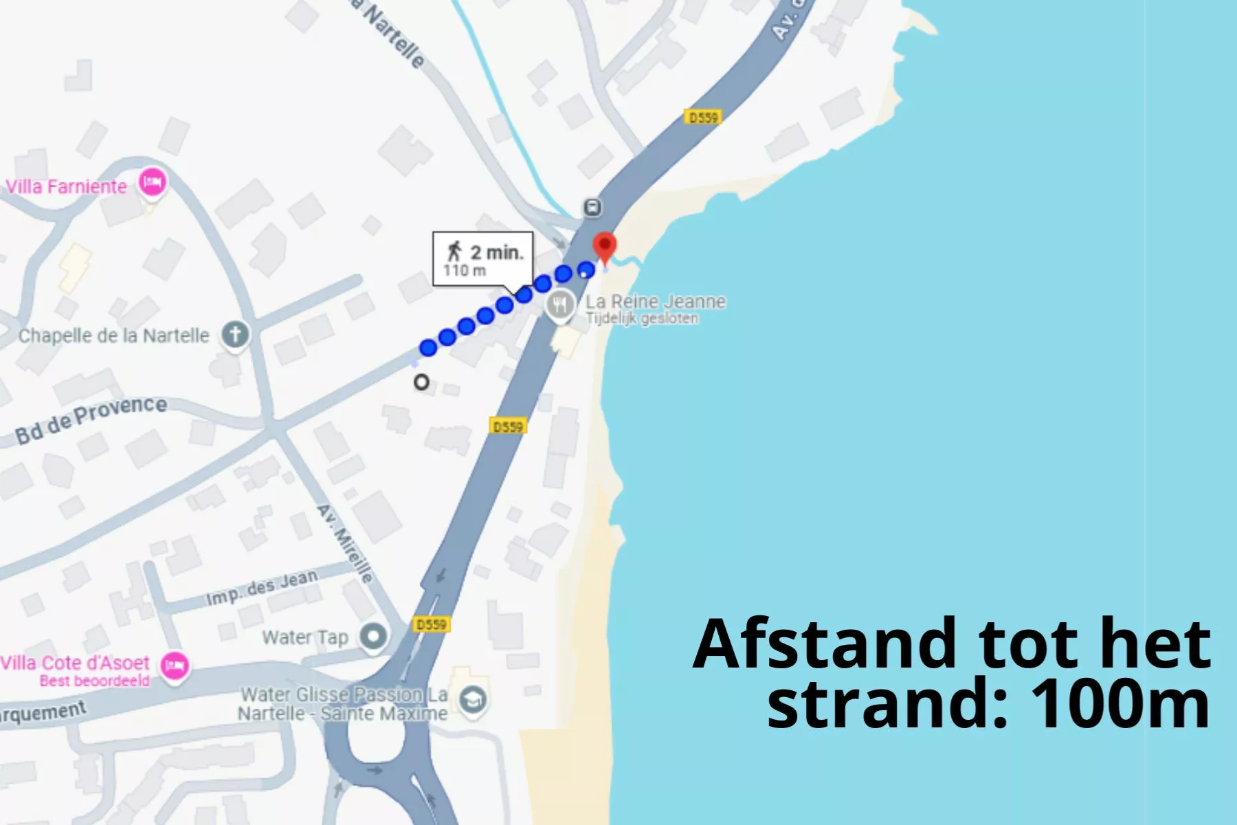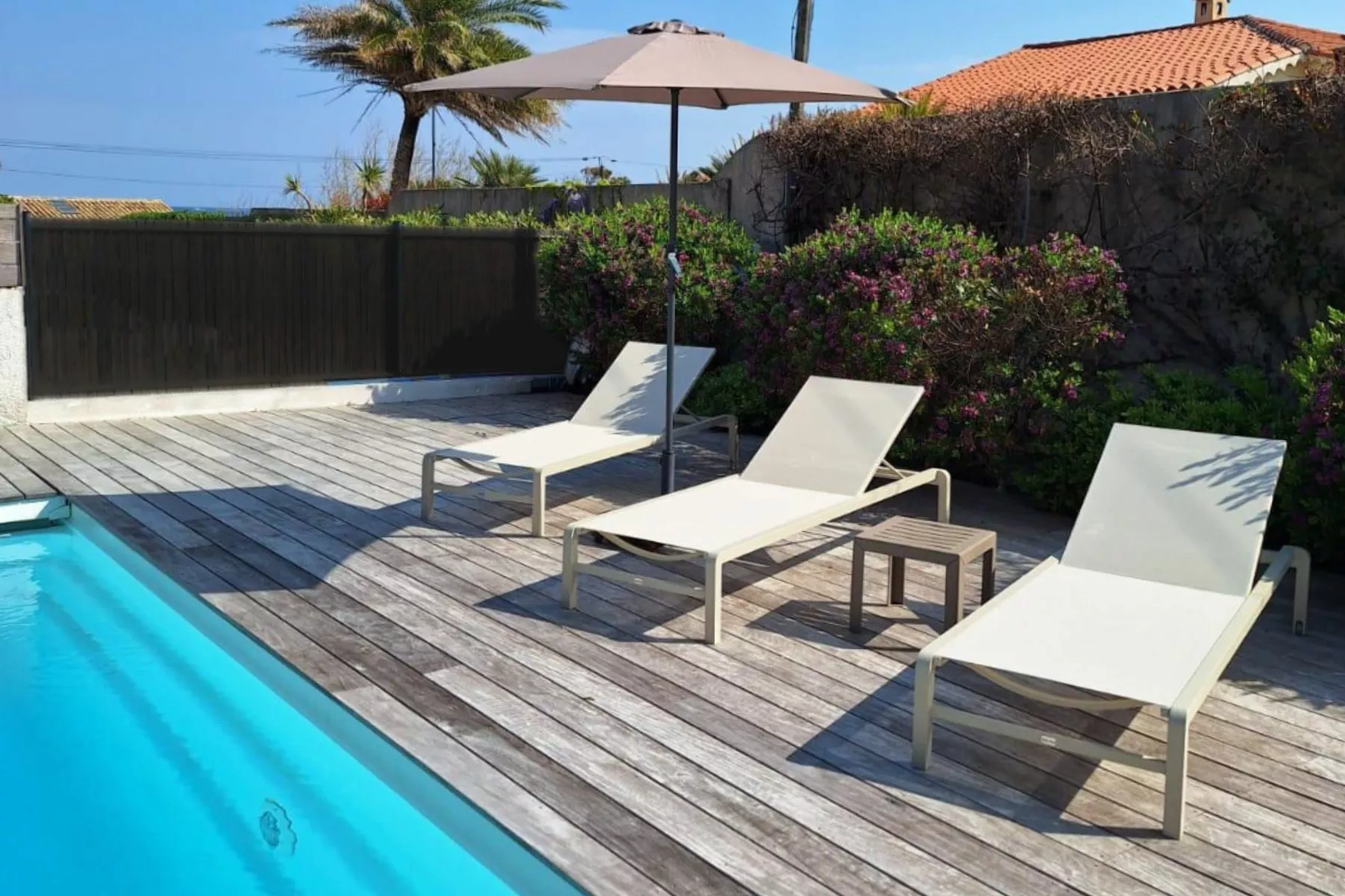 Deze woning bevindt zich op slechts 100 meter van 'Reine Jeanne', het strand van La Nartelle in Sainte-Maxime.