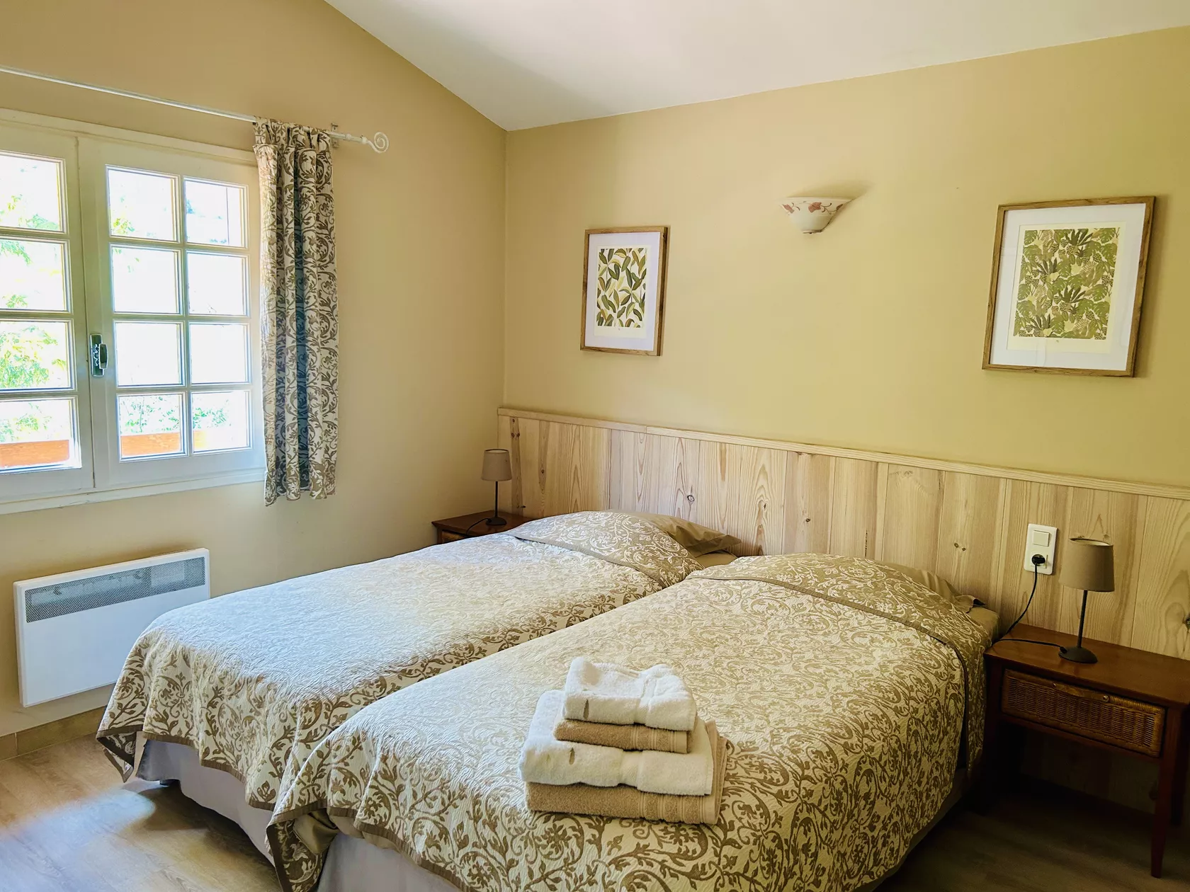 Er zijn vier slaapkamers (twee met dubbelbed, twee met elk 2 - 1 persoonsbedden) en twee badkamers (met toilet) op het verdiep en één slaapkamer (met dubbel bed en stapelbed) en twee badkamers en toilet op het gelijkvloers.