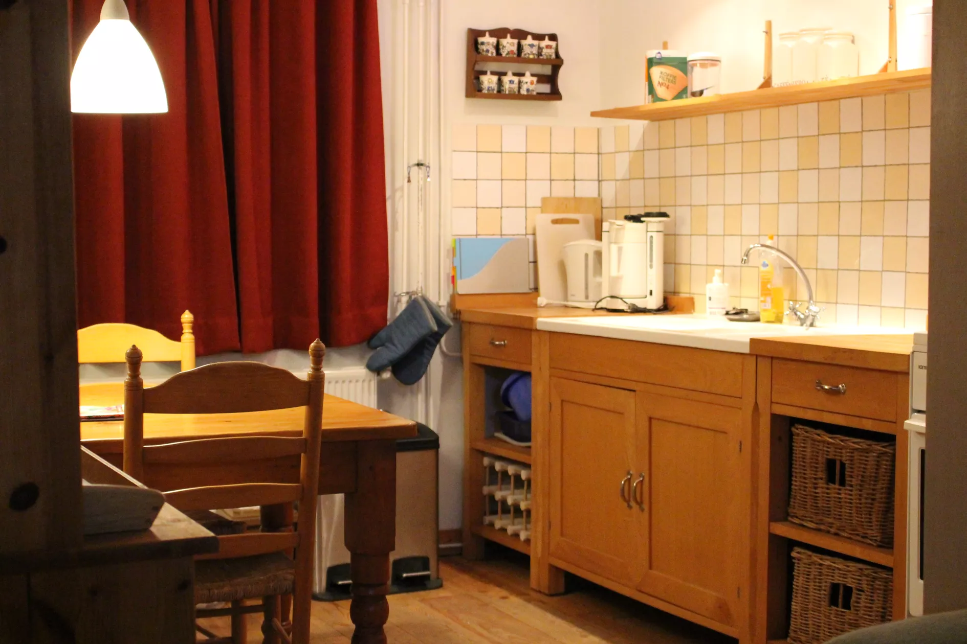 Het huis heeft een royale woonkamer met aansluitend de keuken en de eethoek, in de woonkamer is een houtkachel aanwezig.