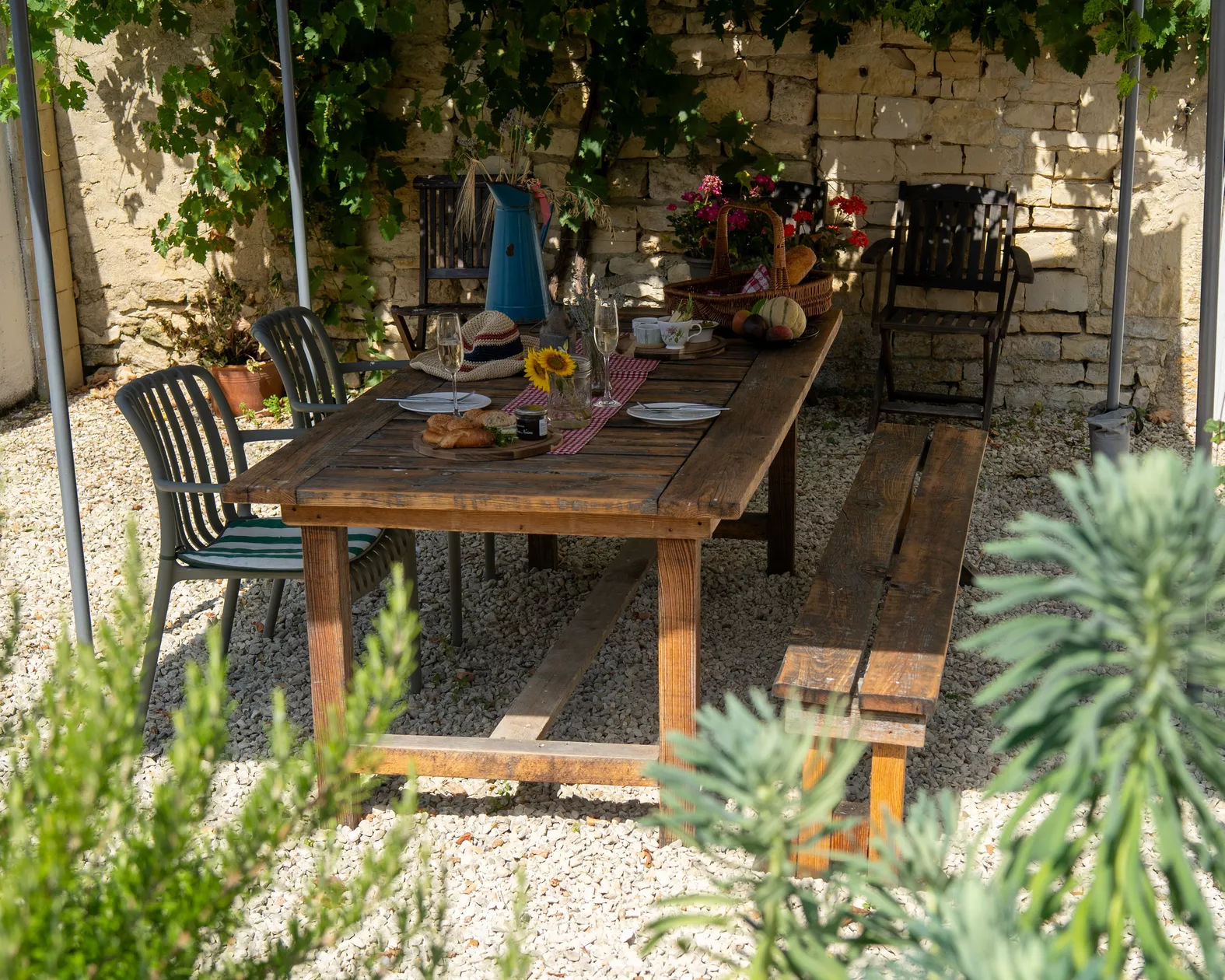 La Ferme is een traditionele Charentaise boerderij met drie slaapkamers - twee tweepersoonskamers en nog een slaapkamer met een stapelbed.