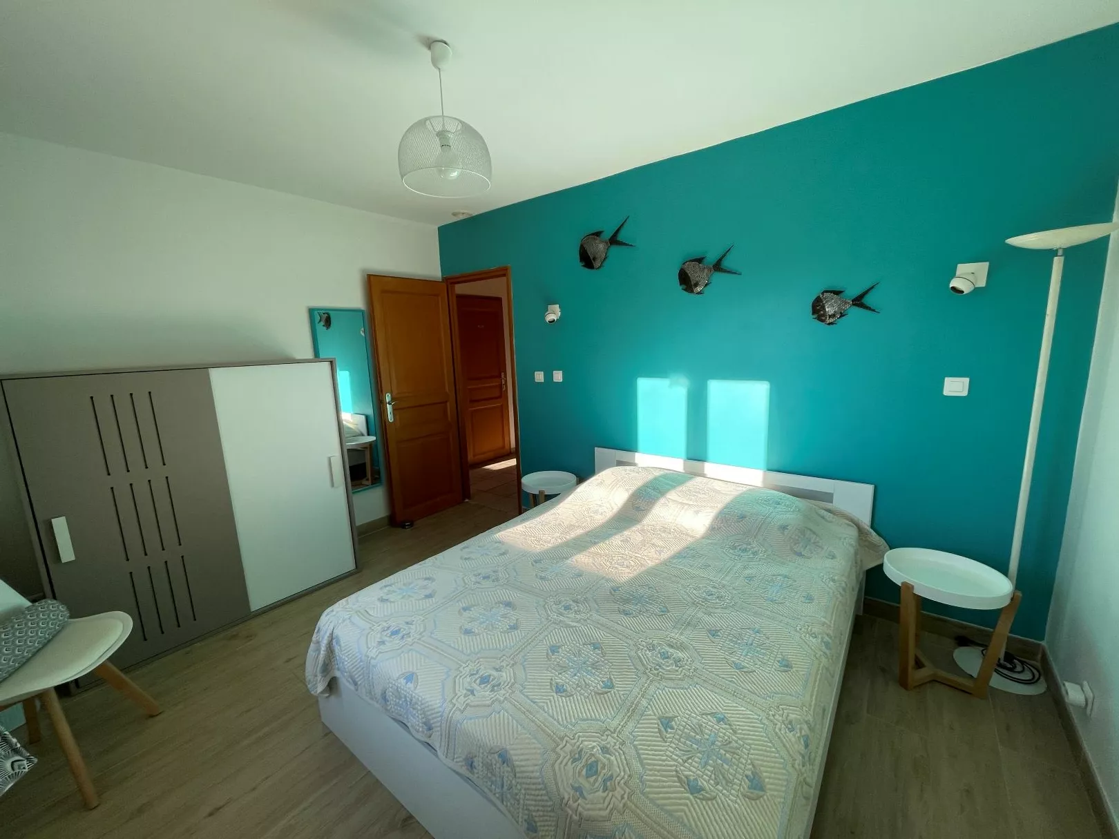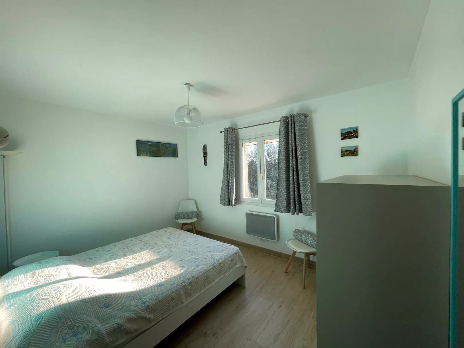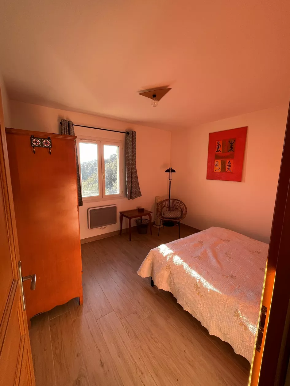 Nachthal, aparte WC, grote badkamer met 2 wastafels en bad. 3 slaapkamers van 18 tot 20 m2 met twee bedden 80X200 , 1 bed 140X200 , 1 bed 160X200. Groot terras op het zuiden met zonnescherm en eethoek. Parkeerplaats voor 3 tot 4 auto's aan de voorkant van het huis.