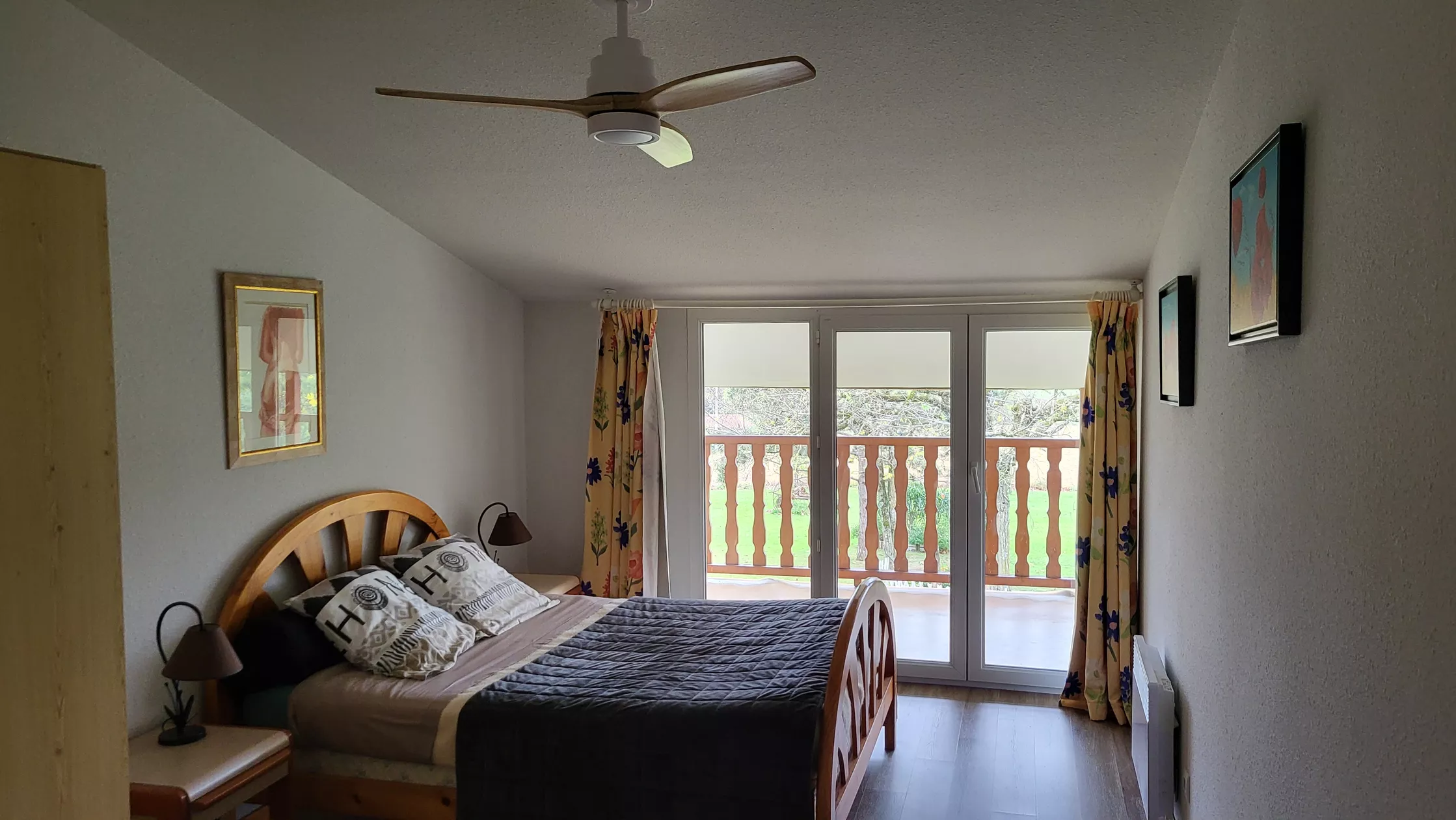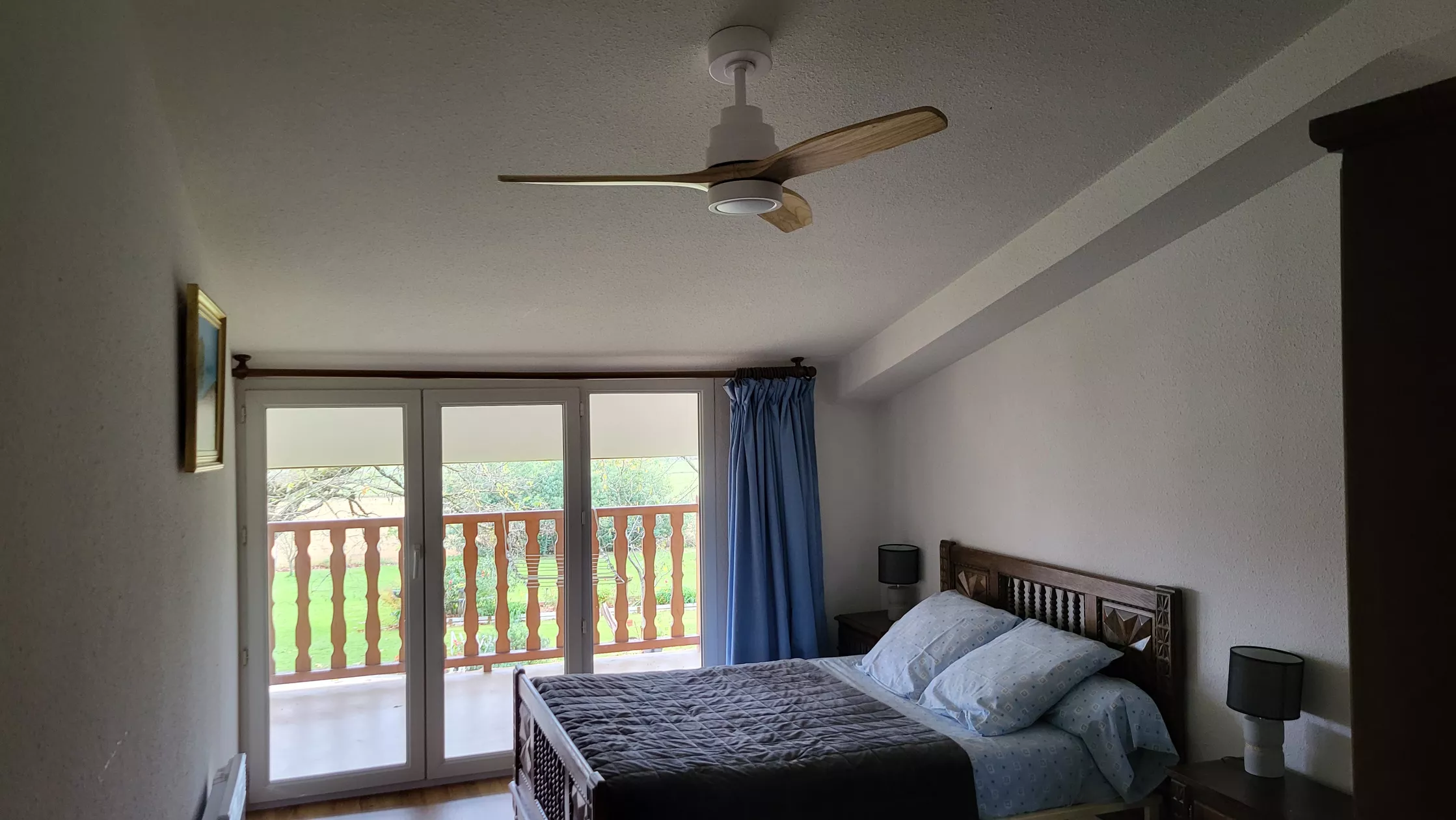 Grote ruime cottage, woonkamer met ingerichte keuken, doucheruimte, wc, uitzicht op de tuin, boven 2 tweepersoonskamers + 2 eenpersoonsbedden op de mezzanine..