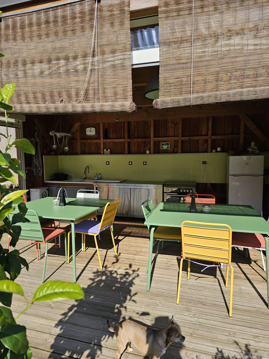 De zomerkeuken met terras biedt u de mogelijkheid om lekker buiten te kokkerellen en te eten. Verder staan er ligbedden voor u klaar om heerlijk op weg te dromen onder de kersenbomen..