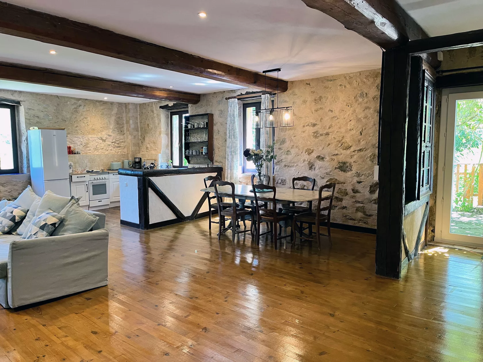 Deze zeer charmante gîte biedt je een lichte en ruime open woonkamer.