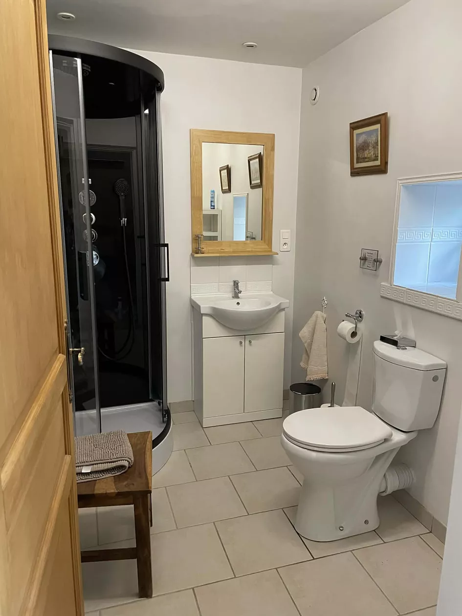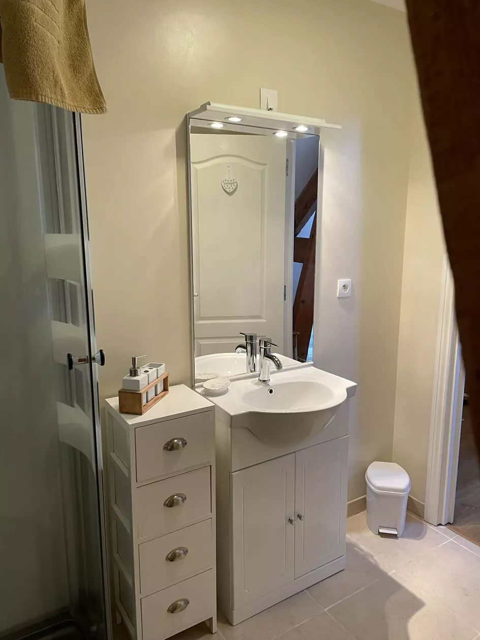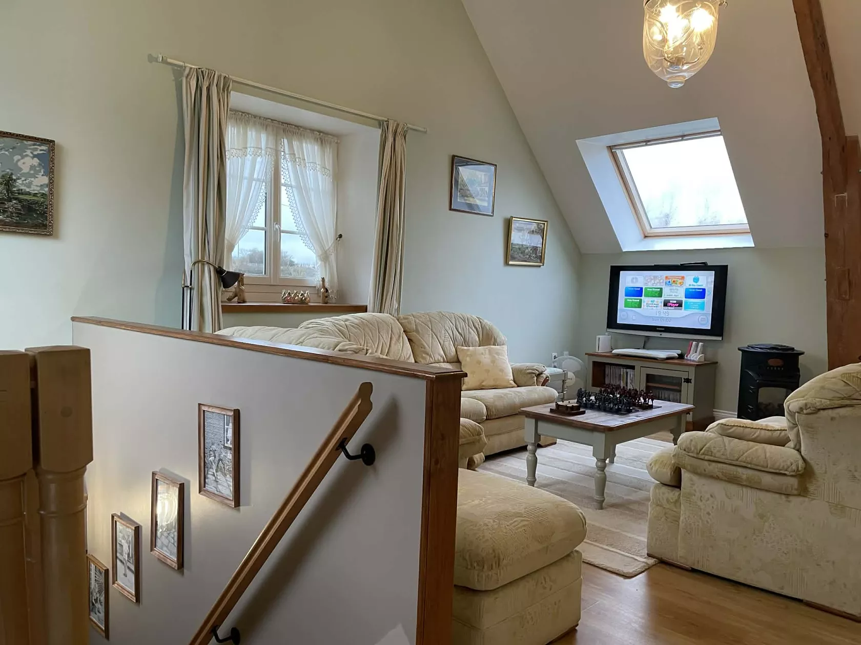 Op de eerste verdieping bevinden zich nog eens twee slaapkamers, beide met eigen badkamer met douche. Een van de slaapkamers heeft een extra eenpersoonsbed. Boven is ook een grote ontspanningsruimte met boeken, bordspellen, puzzels en een spelconsole..