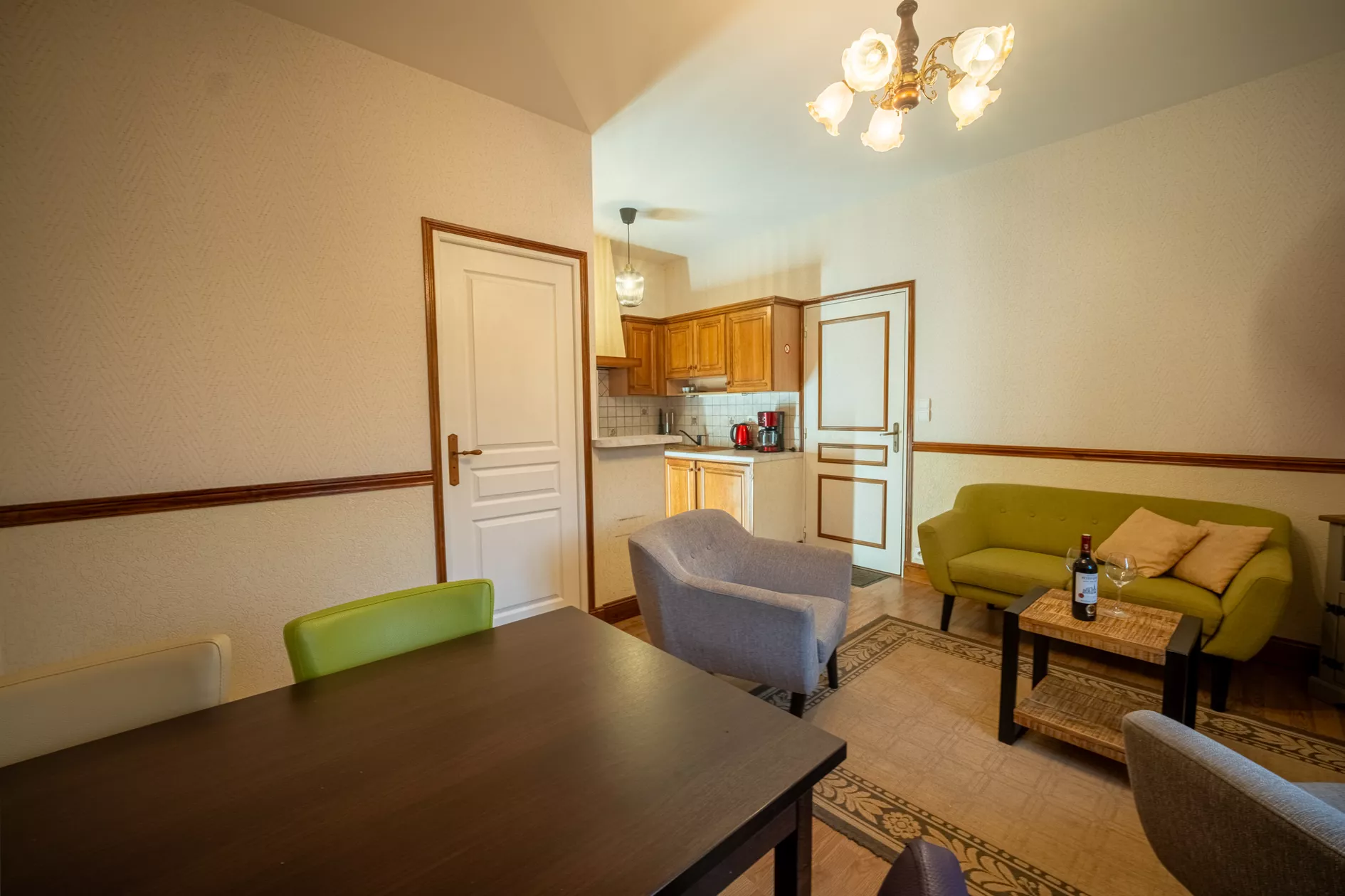 Met de verse producten die u koopt in de supermarkt aan de overkant kunt u heerlijk kokkerellen in uw eigen vakantiewoning. In de salon staan een zitbank, twee comfortabele fauteuils en een eettafel met 4 stoelen.