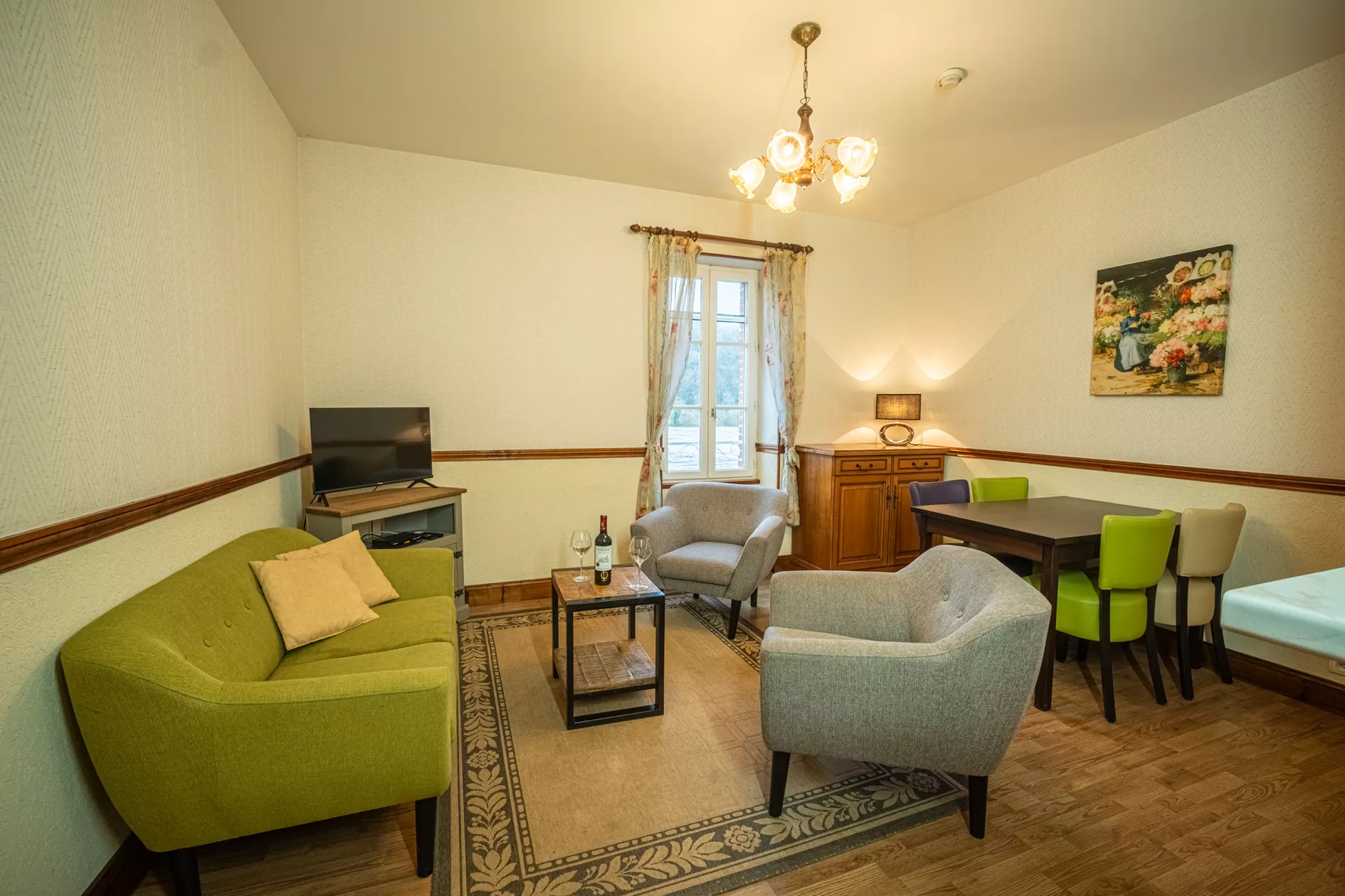 Het pakhuis werd vanuit de nabijgelegen haven bevoorraadt door Gabarres(= traditionele Dordogne-boot met platte bodem). Dit vakantiehuis ligt op het zuiden aan de rivier de Dordogne en bestaat uit een aparte woonkamer met “open keuken” en twee slaapkamers met schone en gestreken lakens. Er is een slaapkamer met 2 x 1 persoon bed (0,90 x 1,90 meter) en een ouderslaapkamer met een comfortabel tweepersoonsbed (1,60 x 2,00 meter).
