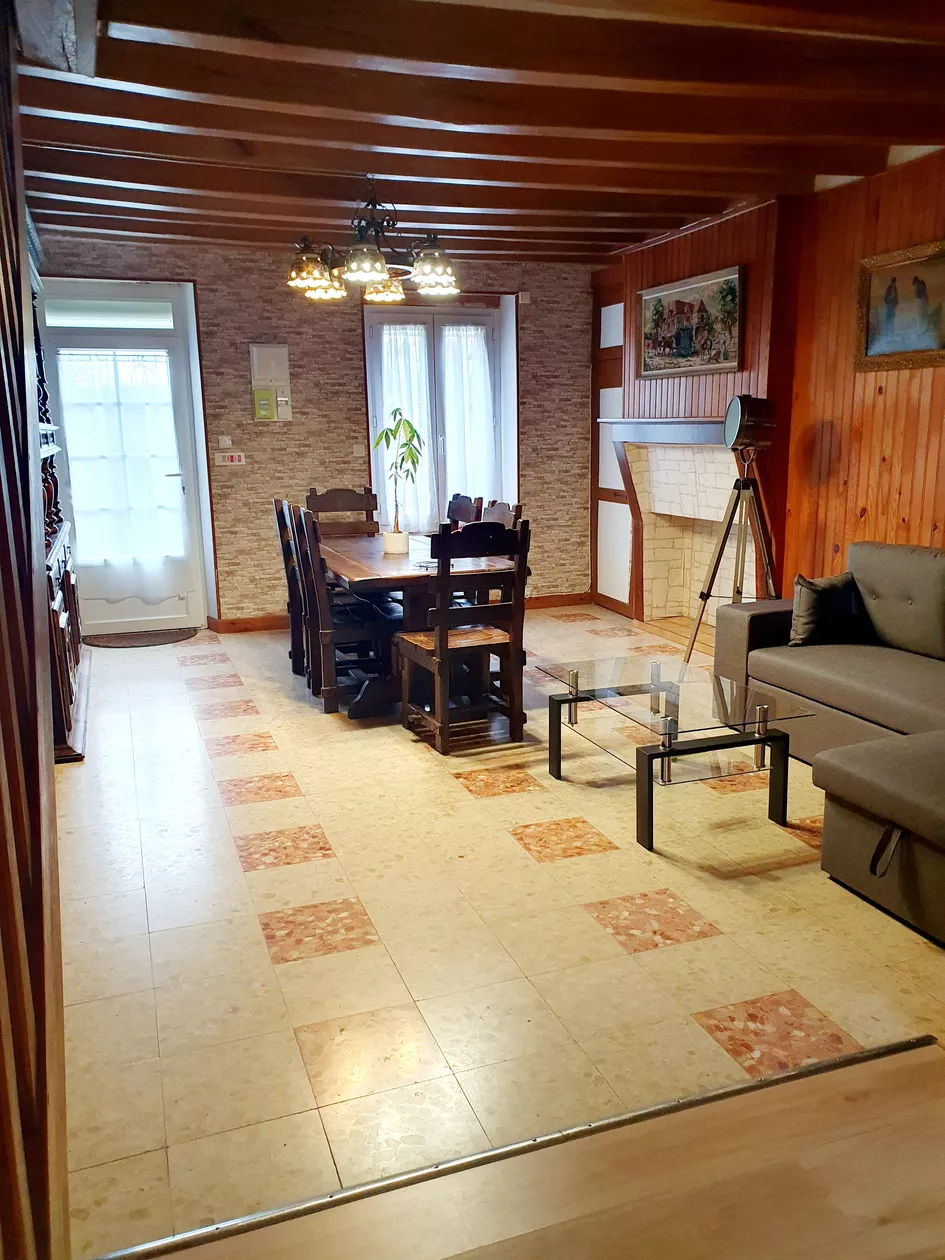 Dit traditionele landelijke huisje van 60m2 heeft een woonkamer van 34 m2, een tv van 1.65, xbox 360, dvd, Wifi, boeken voor kinderen en volwassenen, gezelschapsspellen, een slaaphoekje op de begane grond met een eenpersoonsbed, een grote slaapkamer op de eerste verdieping met een tweepersoonsbed met elektrische bedbodems, een eenpersoonsbed en een tv.