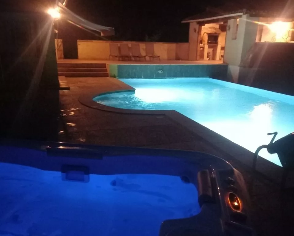 Het grote verwarmde privézwembad beschikt over een overloopsysteem, omheining en alarm, ideaal voor gezinnen. Naast het zwembad ligt het poolhouse met zomerkeuken, een barbecue én de jacuzzi: de perfecte plek om volledig tot rust te komen en samen te genieten.