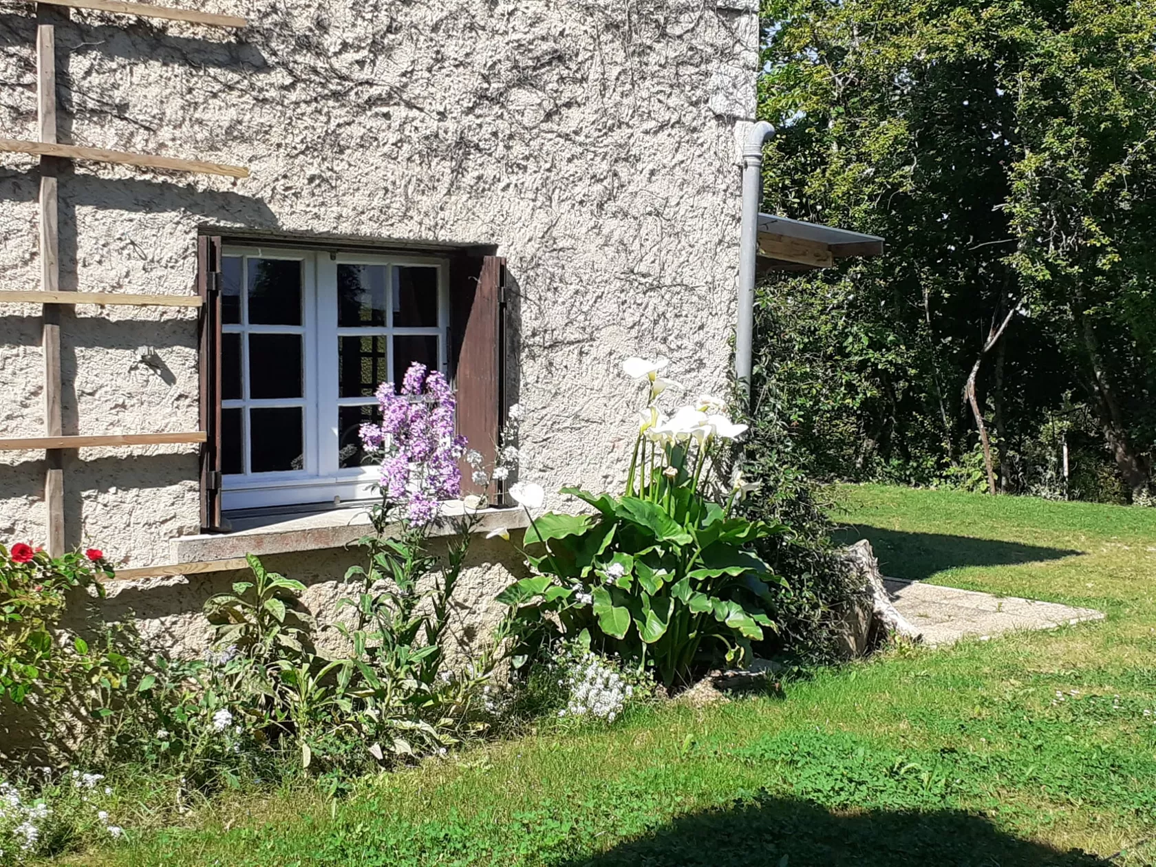 Omdat het huis op een heuvel is gebouwd heeft het aan de voorzijde 2 woonlagen en aan de achterzijde 3. De gîte ligt aan de achterzijde, grenzend aan een grote tuin met vijver, diverse terrassen en uitzicht op de vallei. Er is een trapopgang naar het zwembad aan de voorkant van het huis.
