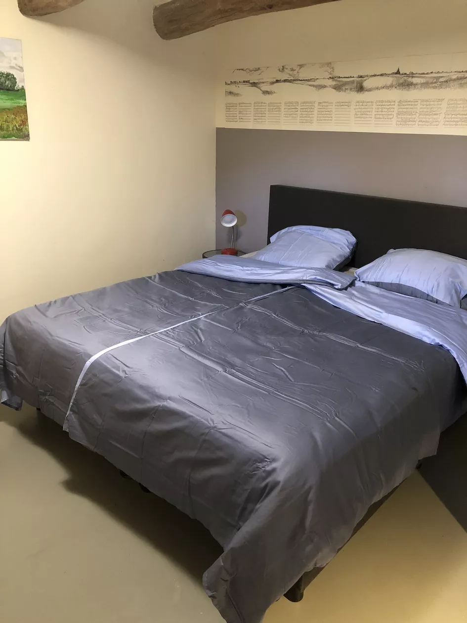 tv-scherm. Op de volgende etage is de tweede slaapkamer met twee boxspring-bedden van